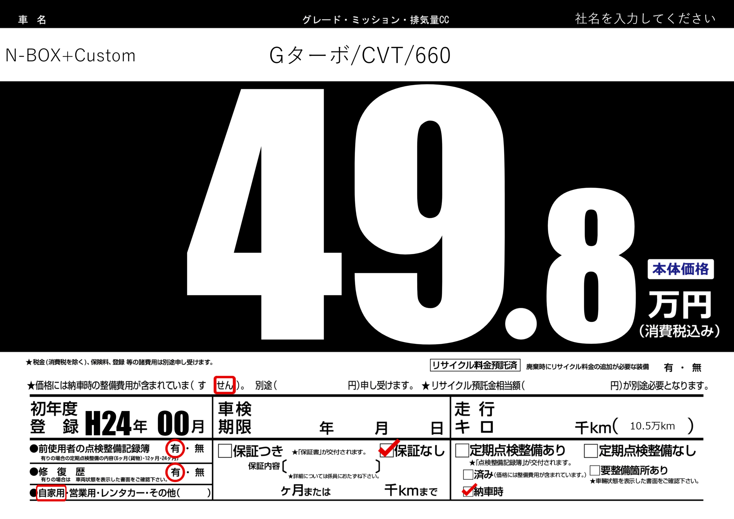 | 車名 | N-BOX+Custom | グレード ミッション 排気量 |