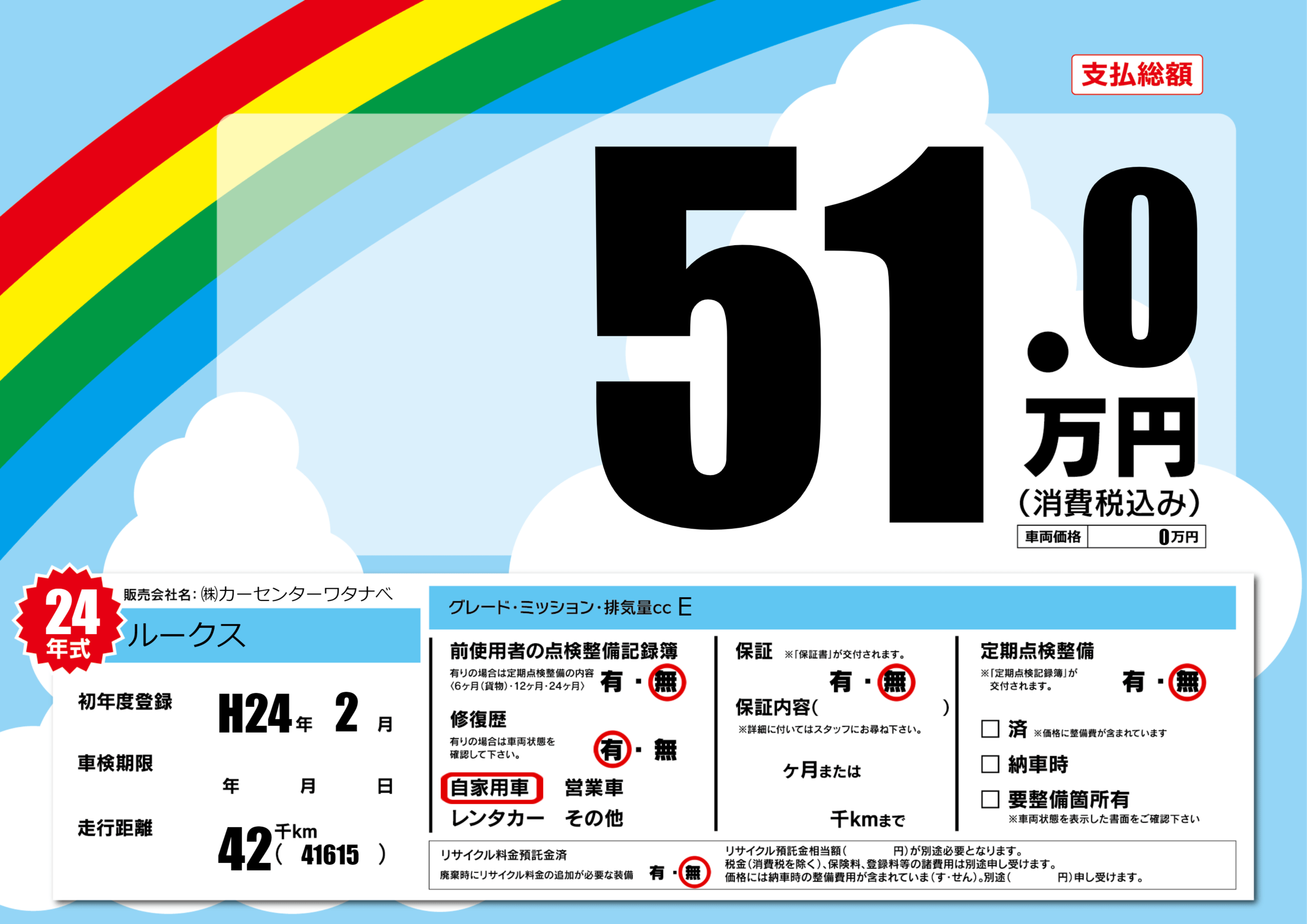 | 走行キロ | 4.2万km | 初年度登録 | H24年2月 |