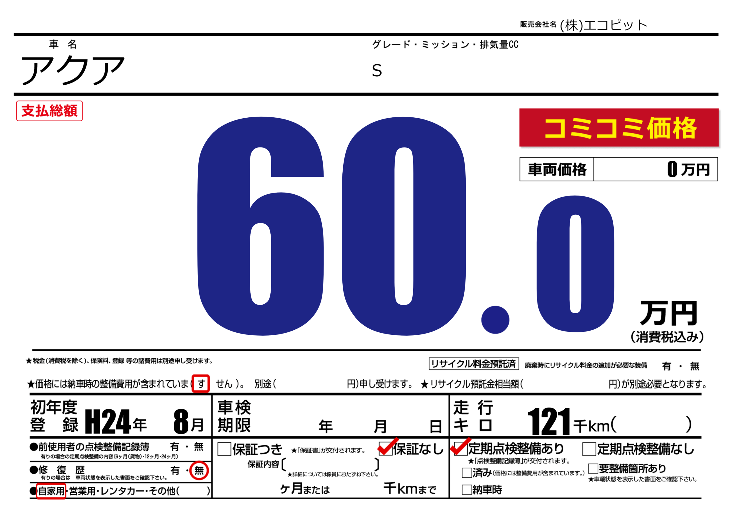 | 定期点検整備 | 定期点検整備あり | ||