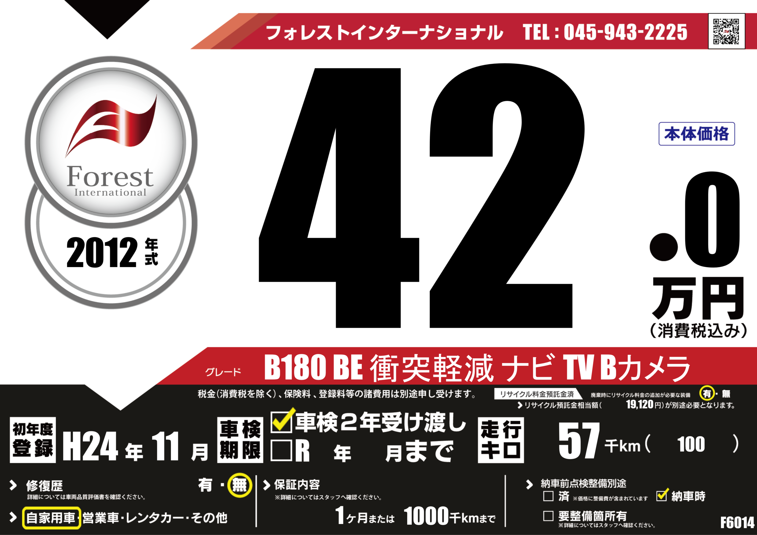 | 走行キロ | 5.7万km | 初年度登録 | H24年11月 |