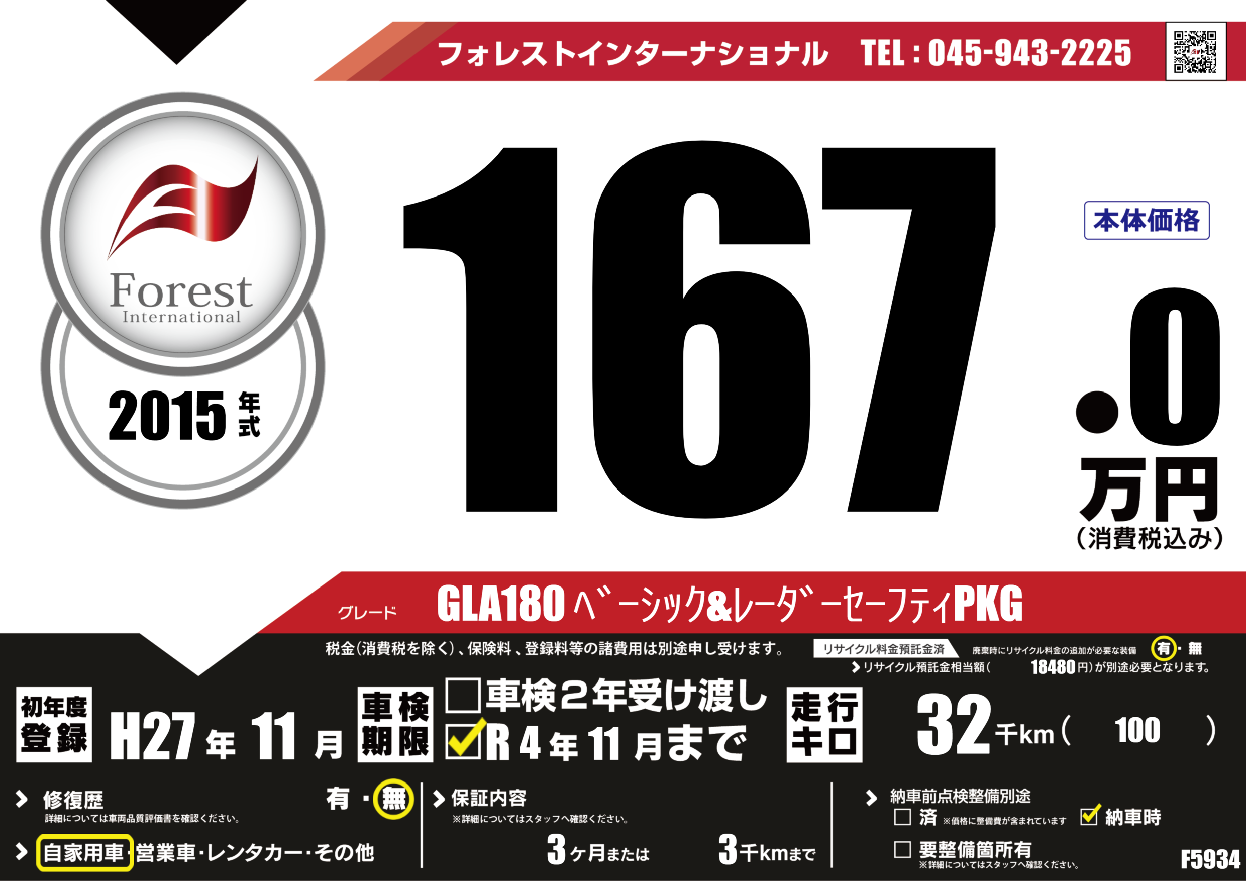 | 走行キロ | 3.2万km | 初年度登録 | H27年11月 |