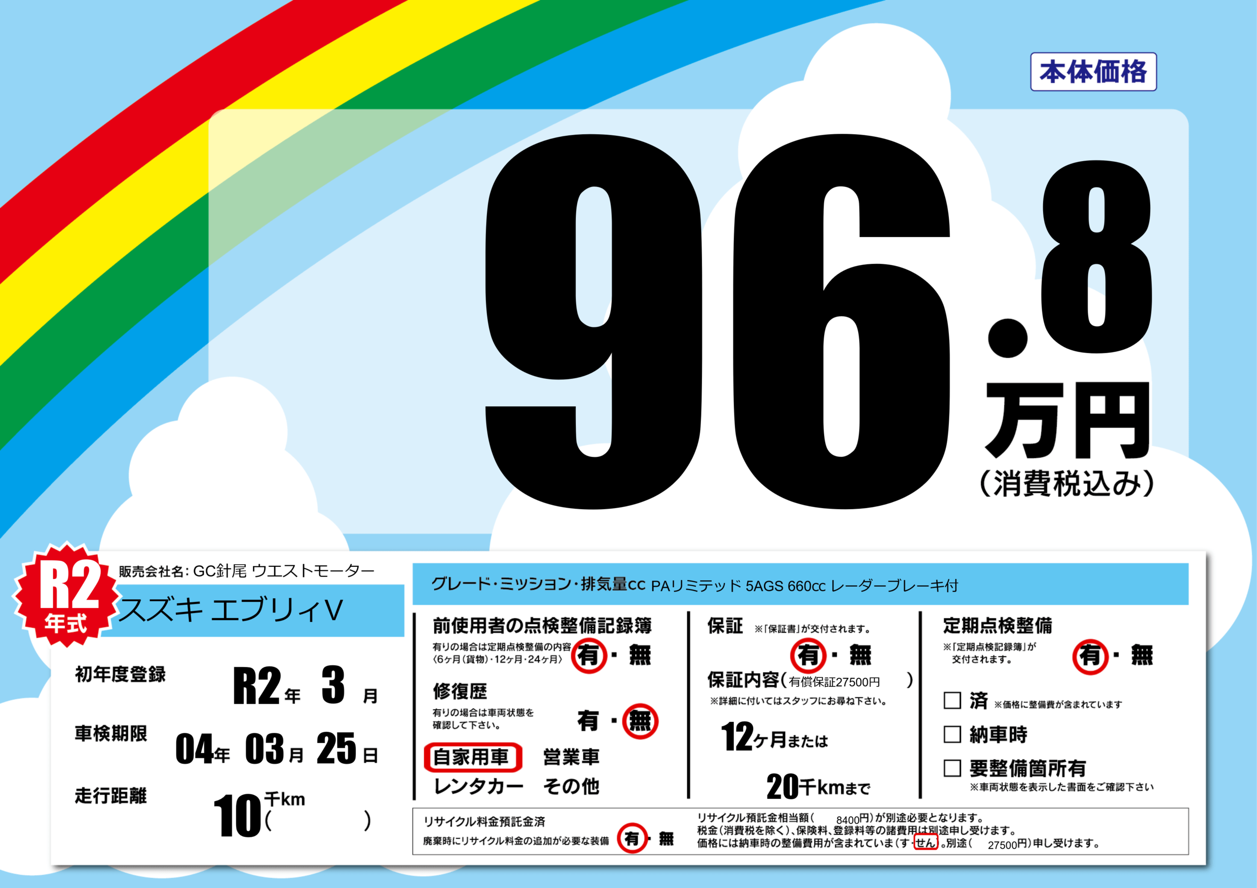 有限会社ウエストモーターGC針尾店の展示車