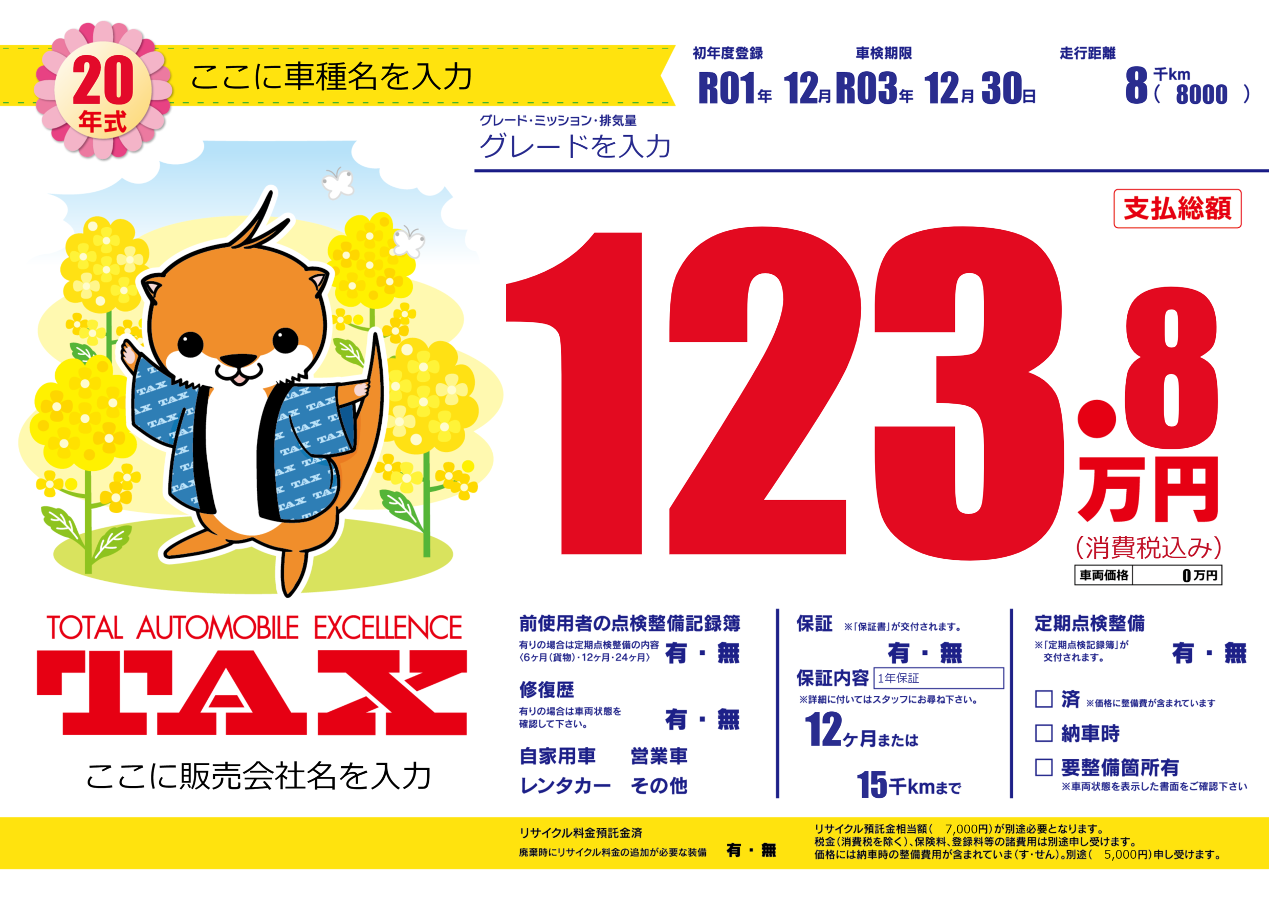 | 車名 | ここに車種名を入力 | グレード ミッション 排気量 |