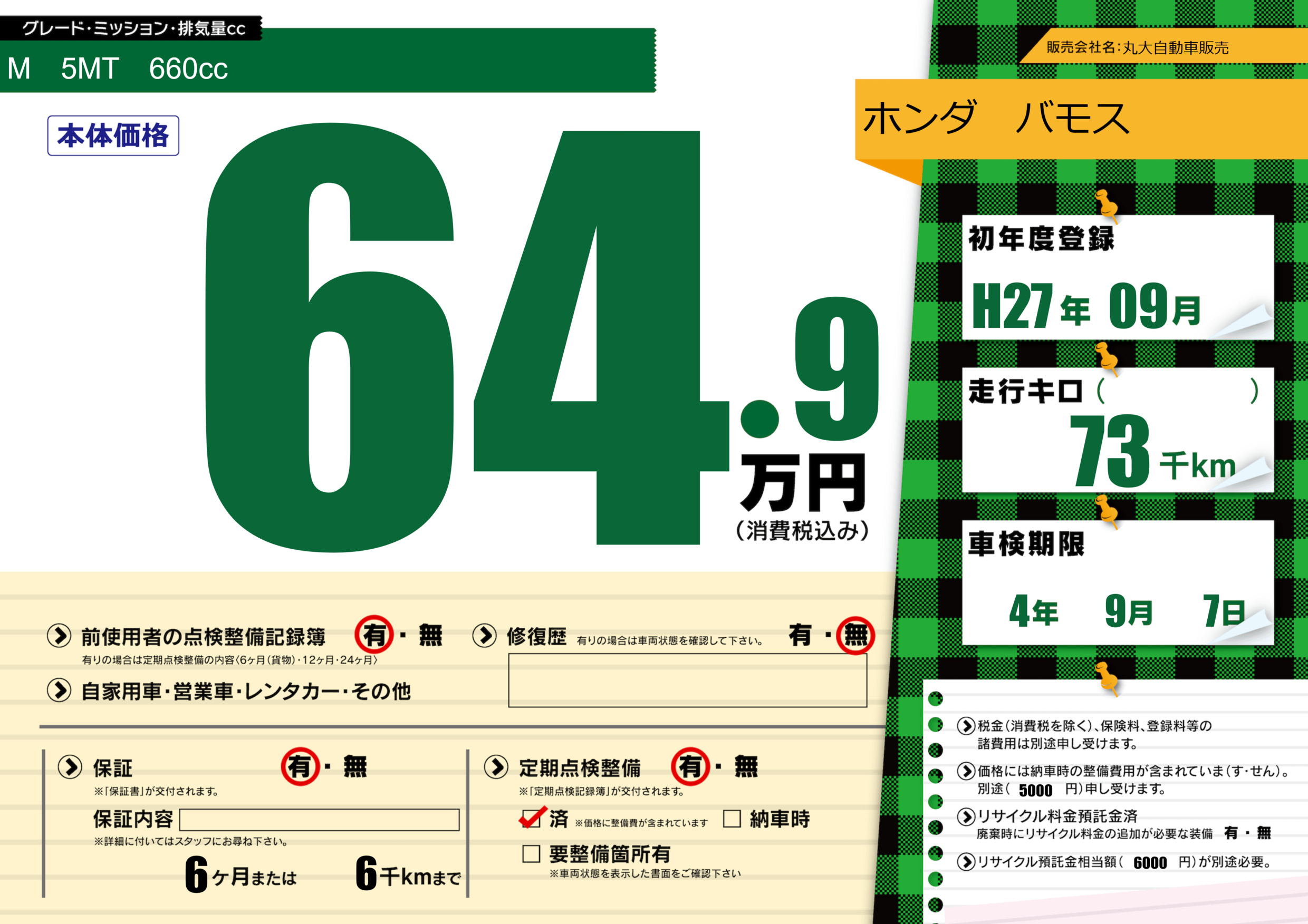| 定期点検整備 | 定期点検整備あり 定期点検整備済み | ||