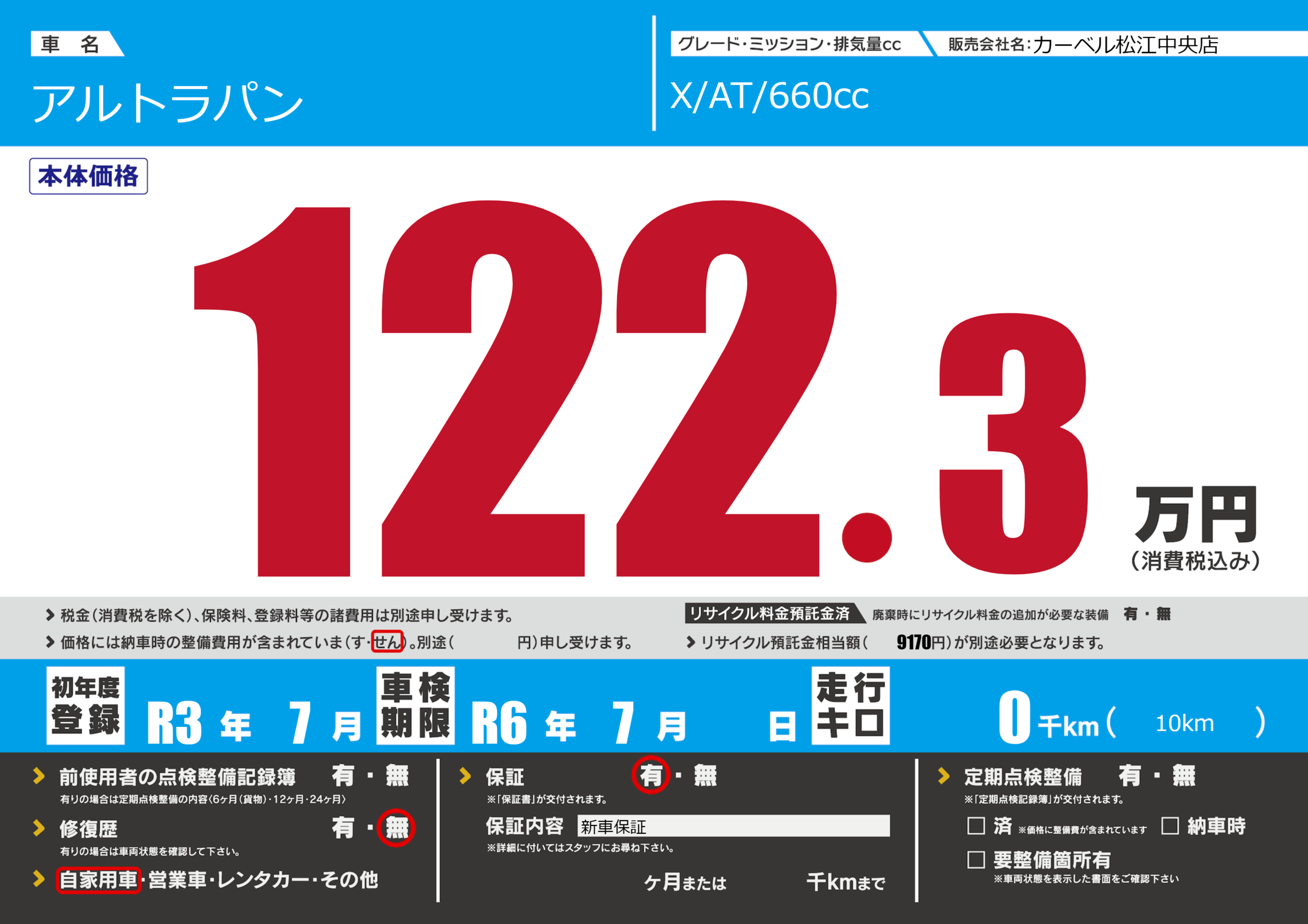 | 車名 | アルトラパン | グレード ミッション 排気量 |