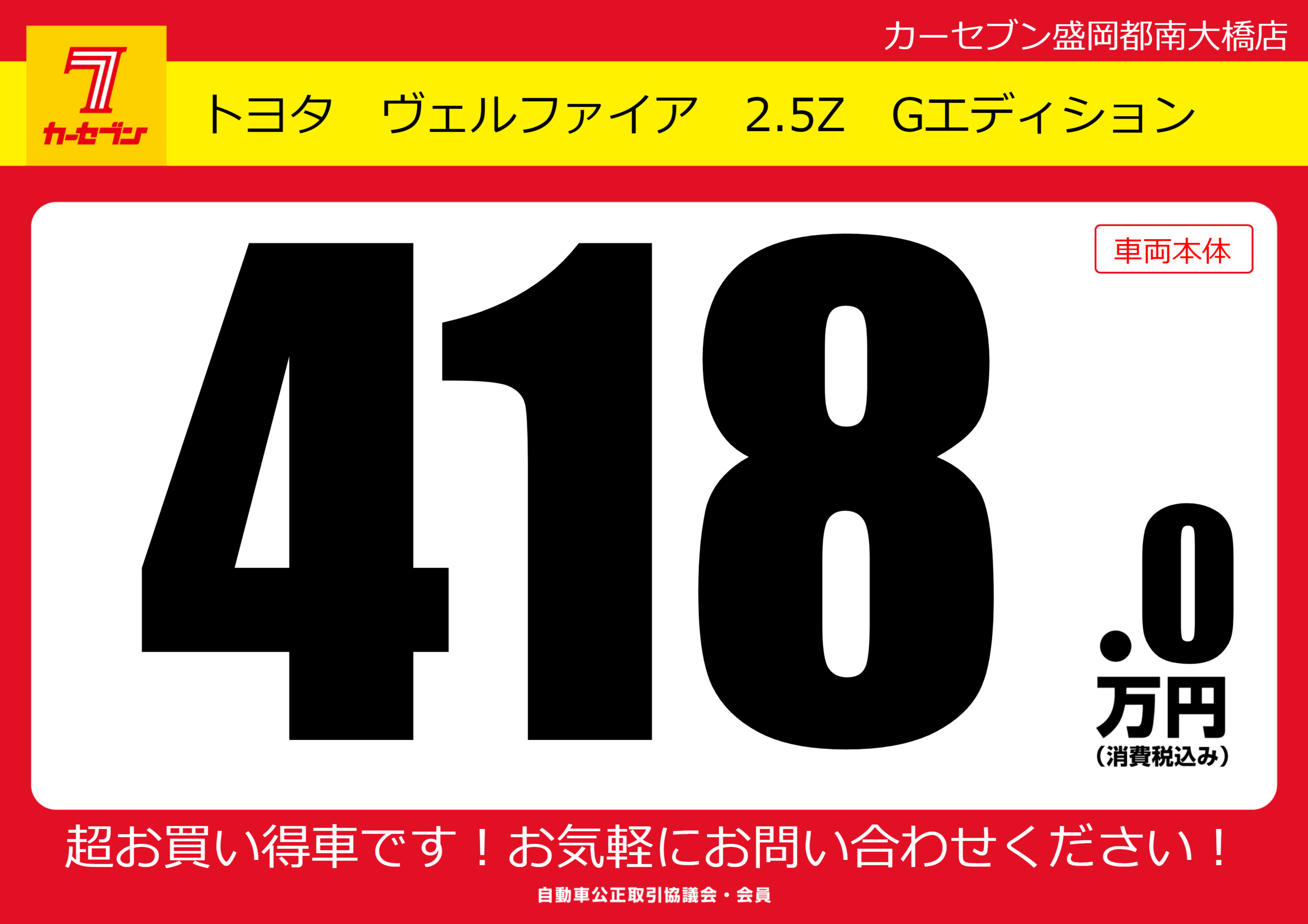 | 車名 | トヨタ ヴェルファイア 2.5Z Gエディション | グレード ミッション 排気量 |