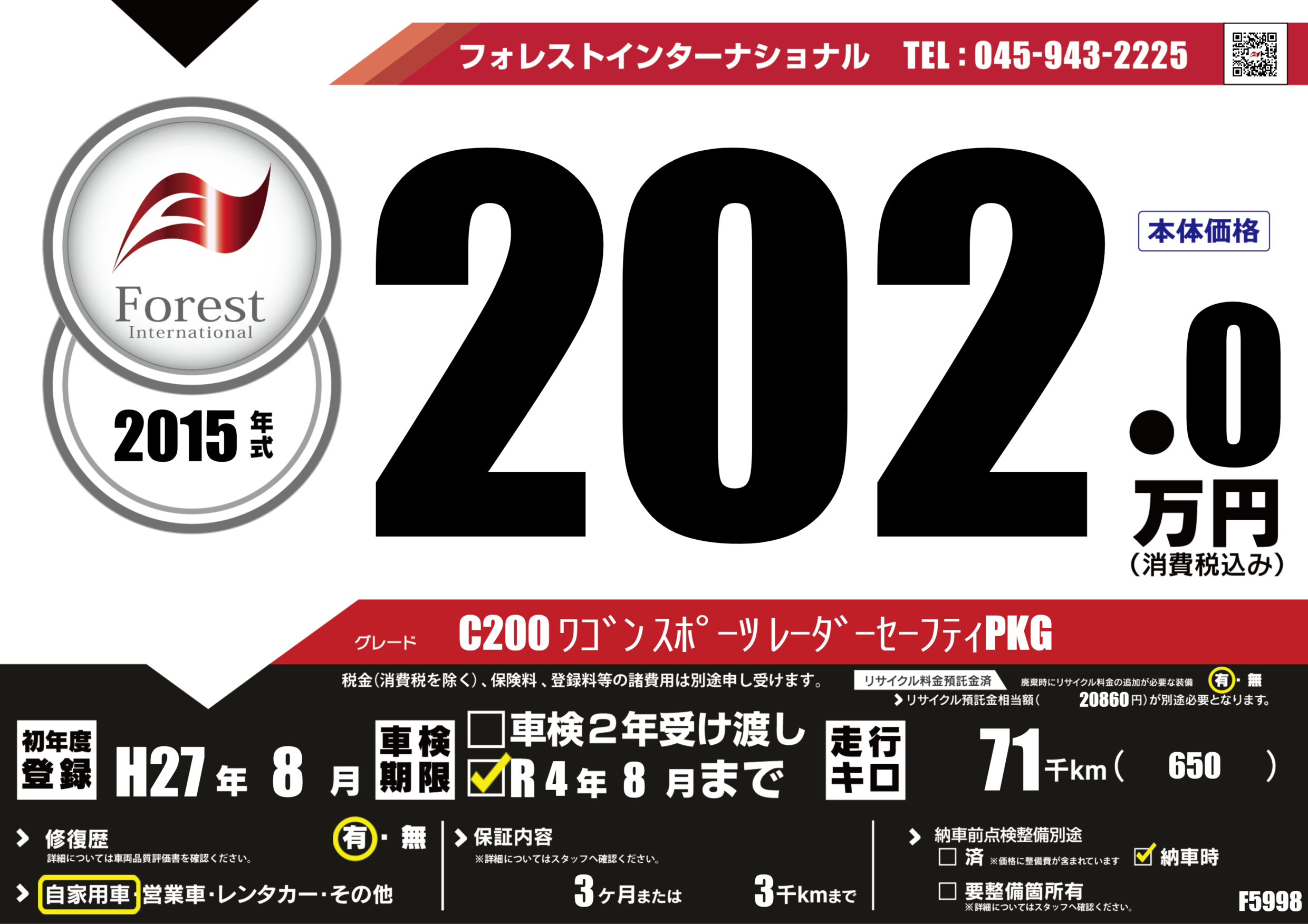 | 初年度登録 | H27年8月 | ||