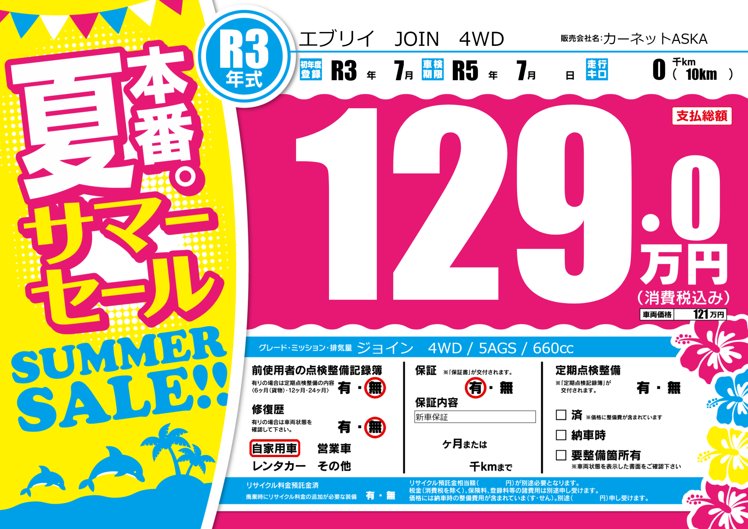 | 車名 | エブリイ JOIN 4WD | グレード ミッション 排気量 |