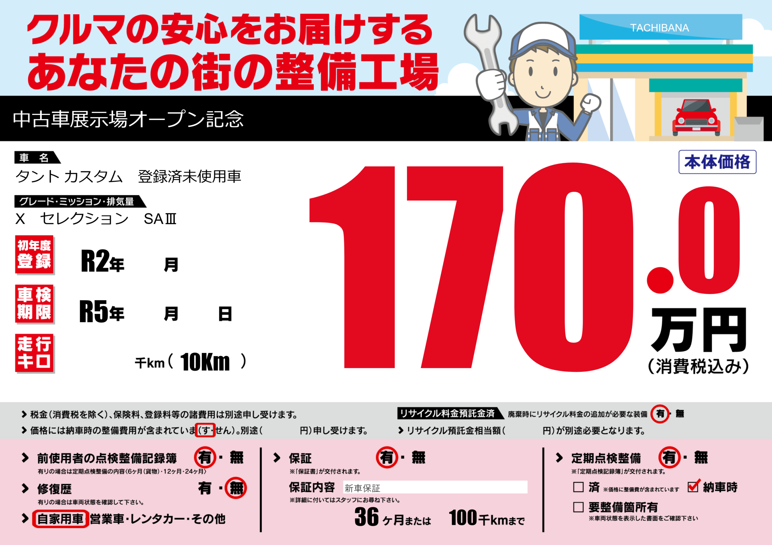 | 定期点検整備 | 定期点検整備あり 納車時あり | ||