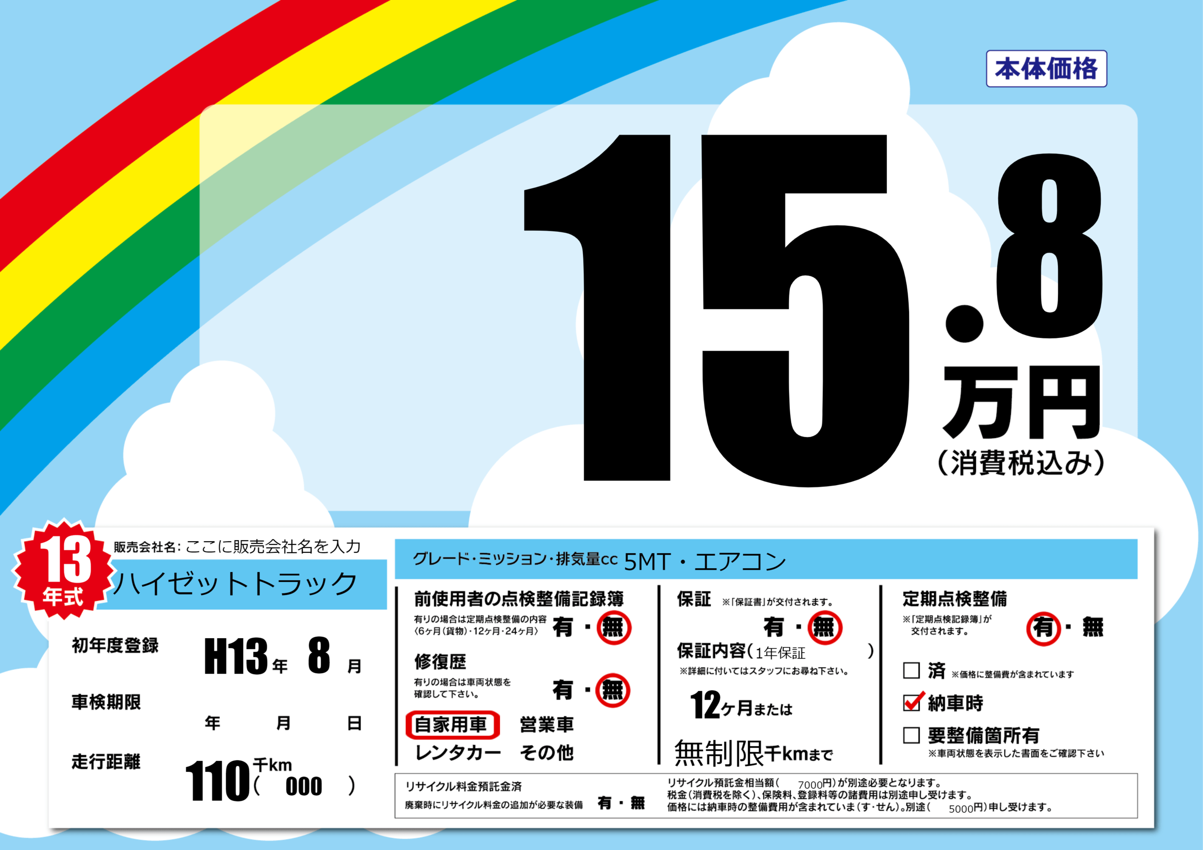 | 定期点検整備 | 定期点検整備あり 納車時あり | ||