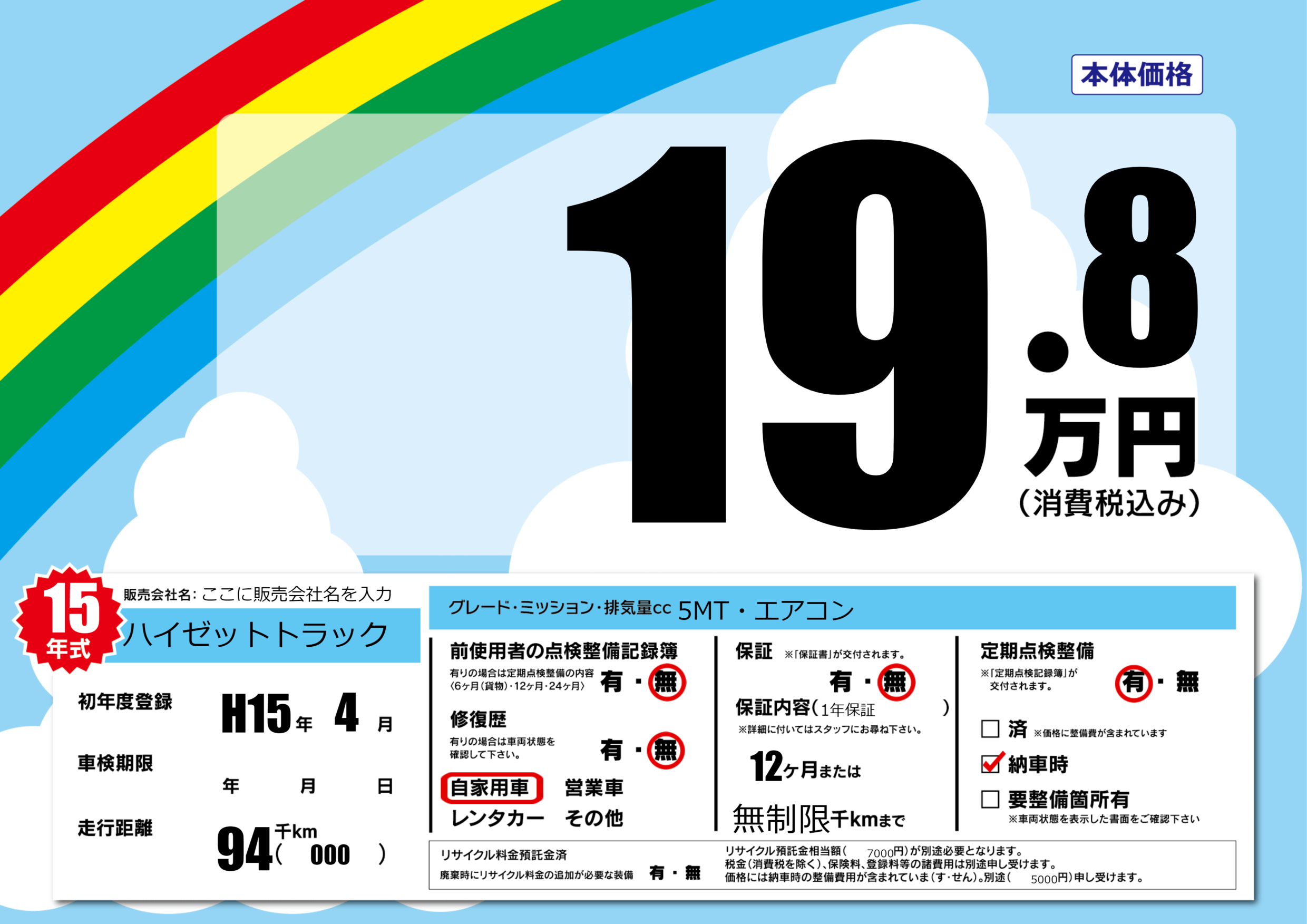| 定期点検整備 | 定期点検整備あり 納車時あり | ||
