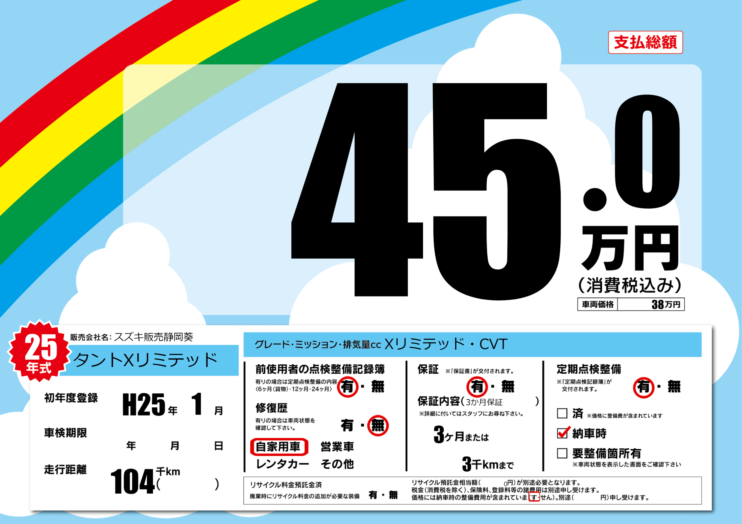 | 定期点検整備 | 定期点検整備あり 納車時あり | ||