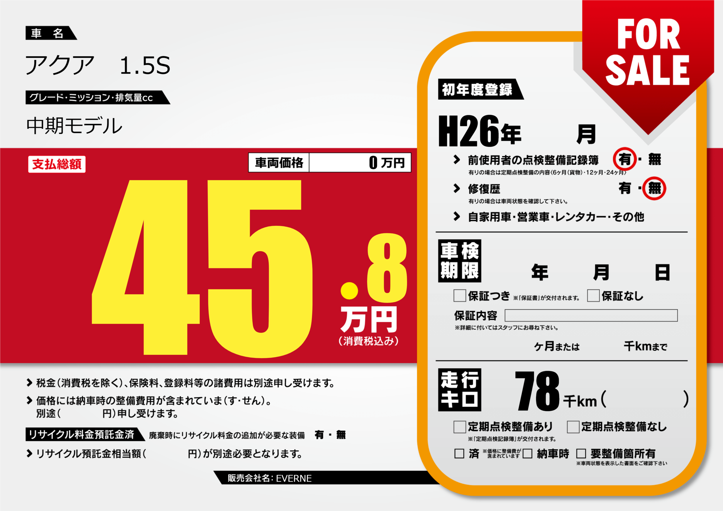 | 車検制限 | - 年 - 月 - 日 | ||