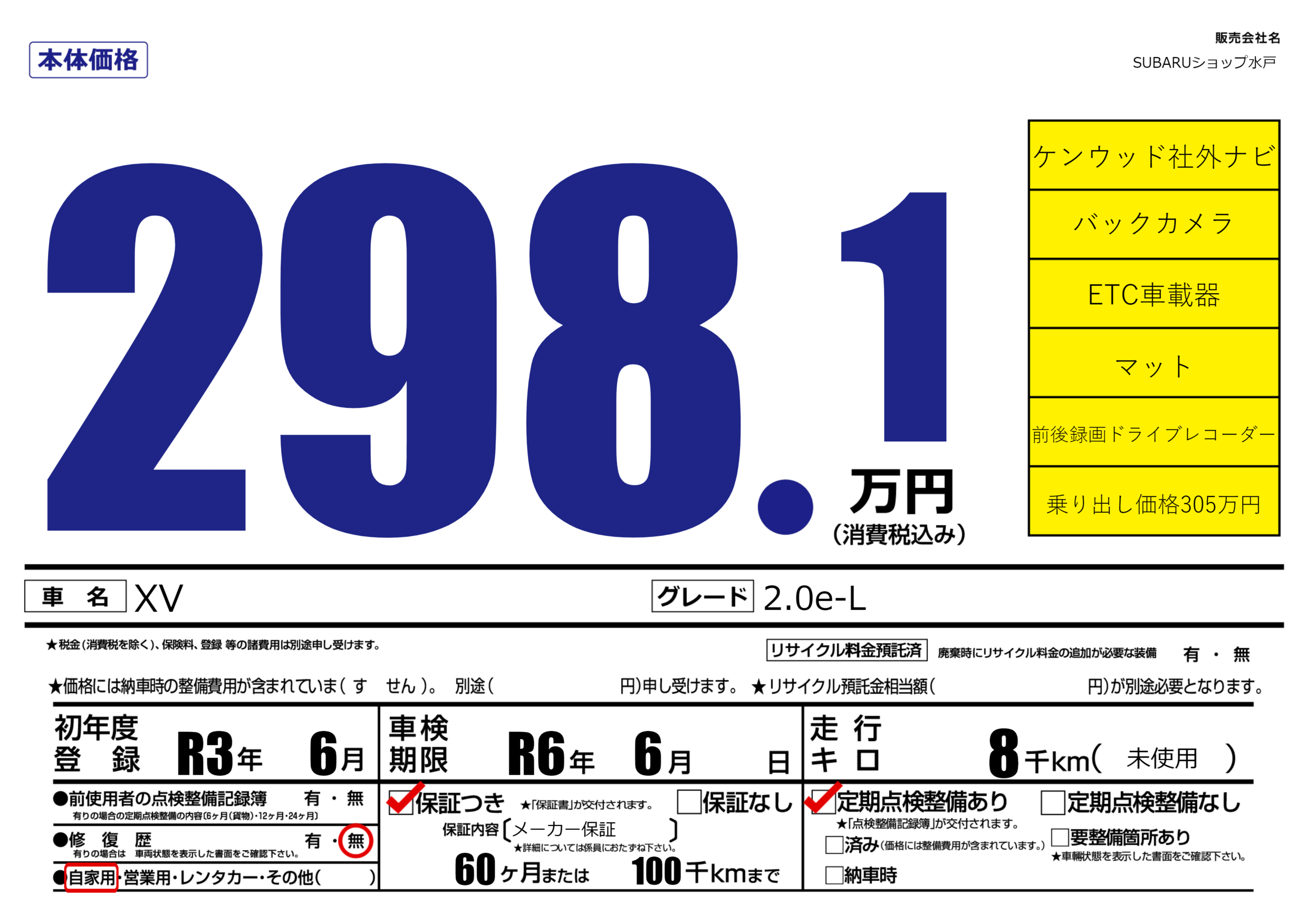 | 走行キロ | 0.8万km | 初年度登録 | R3年6月 |
