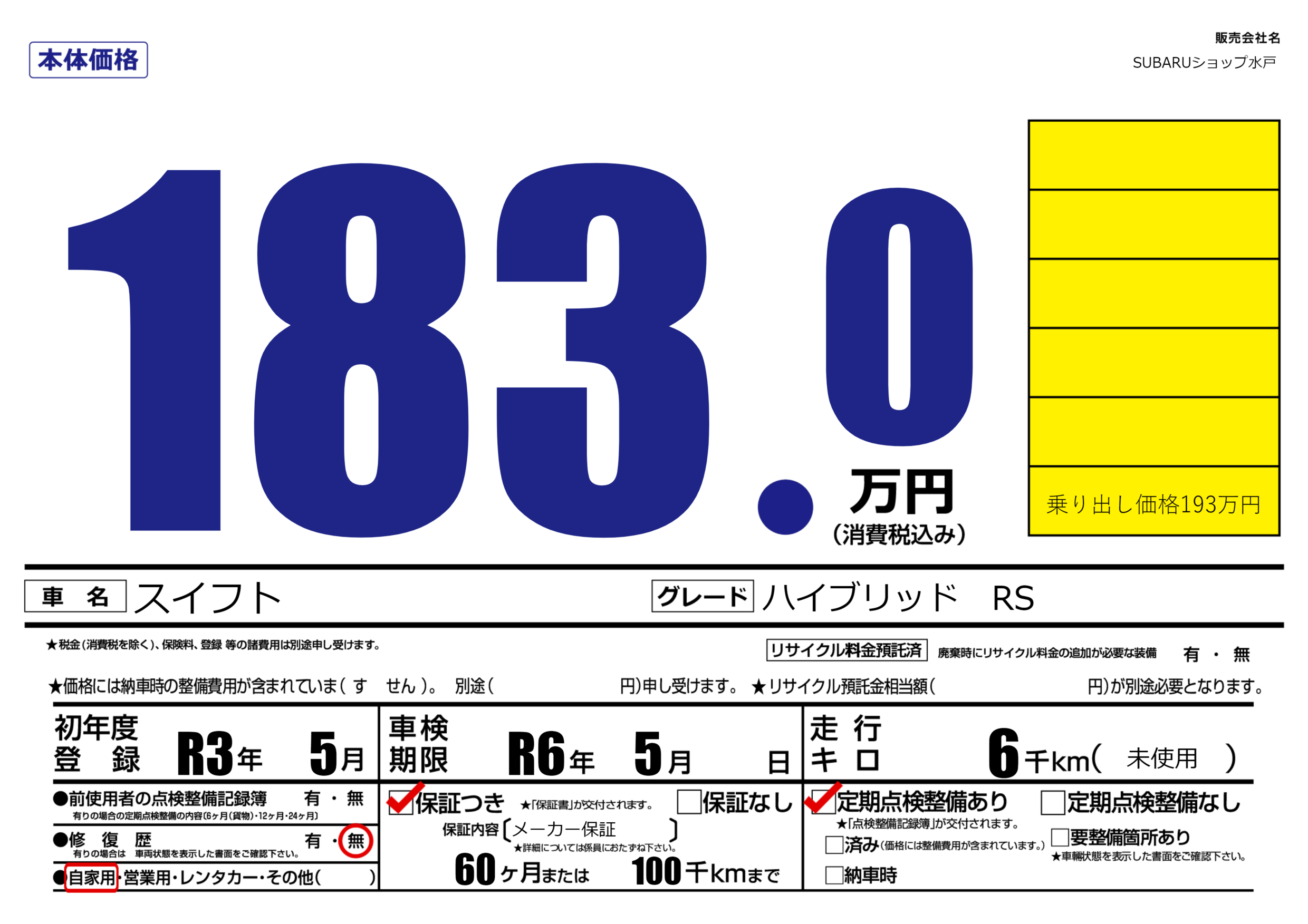 なし | 車検制限 | R6年5月---月 |