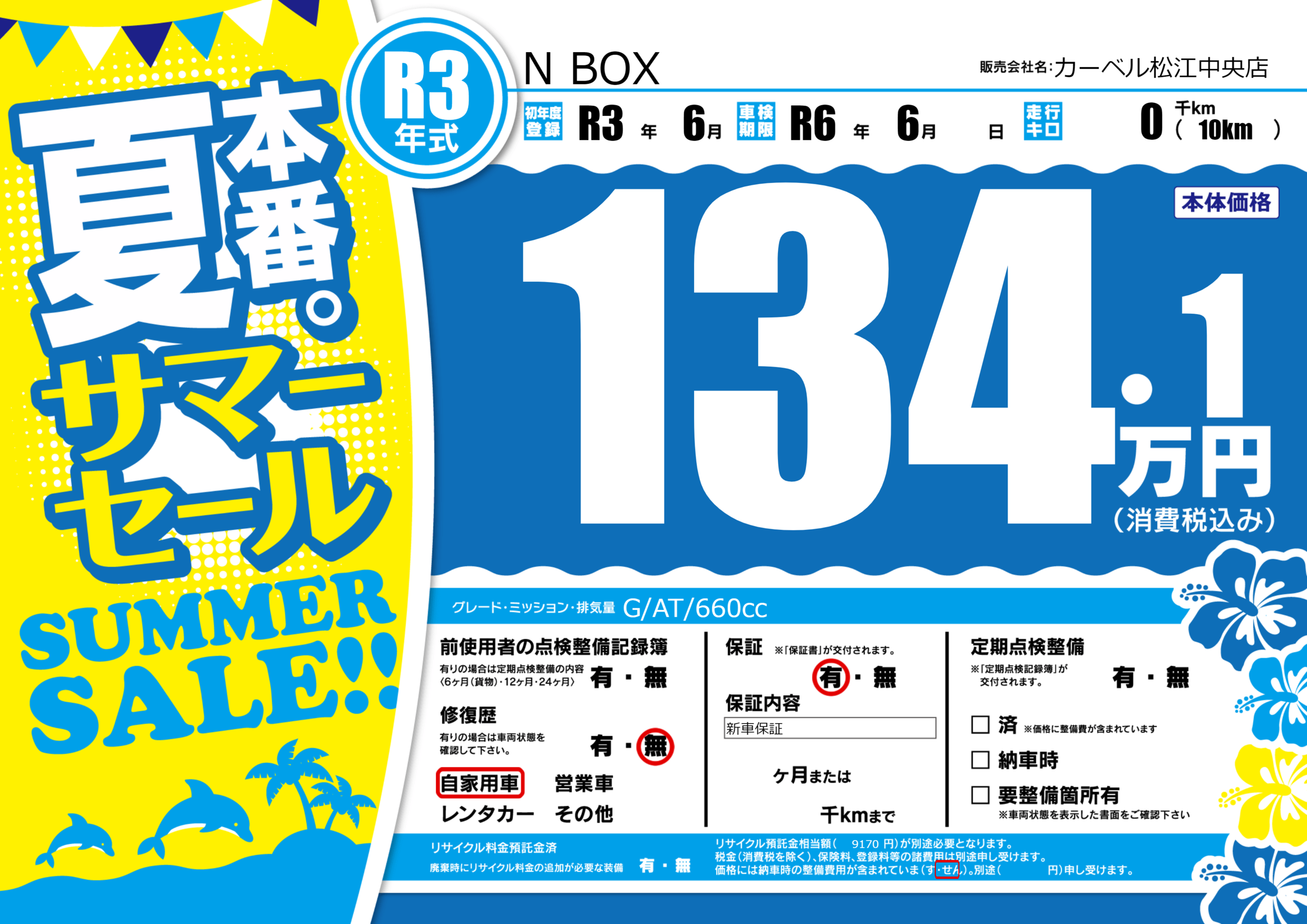 | 走行キロ | - | 初年度登録 | R3年6月 |
