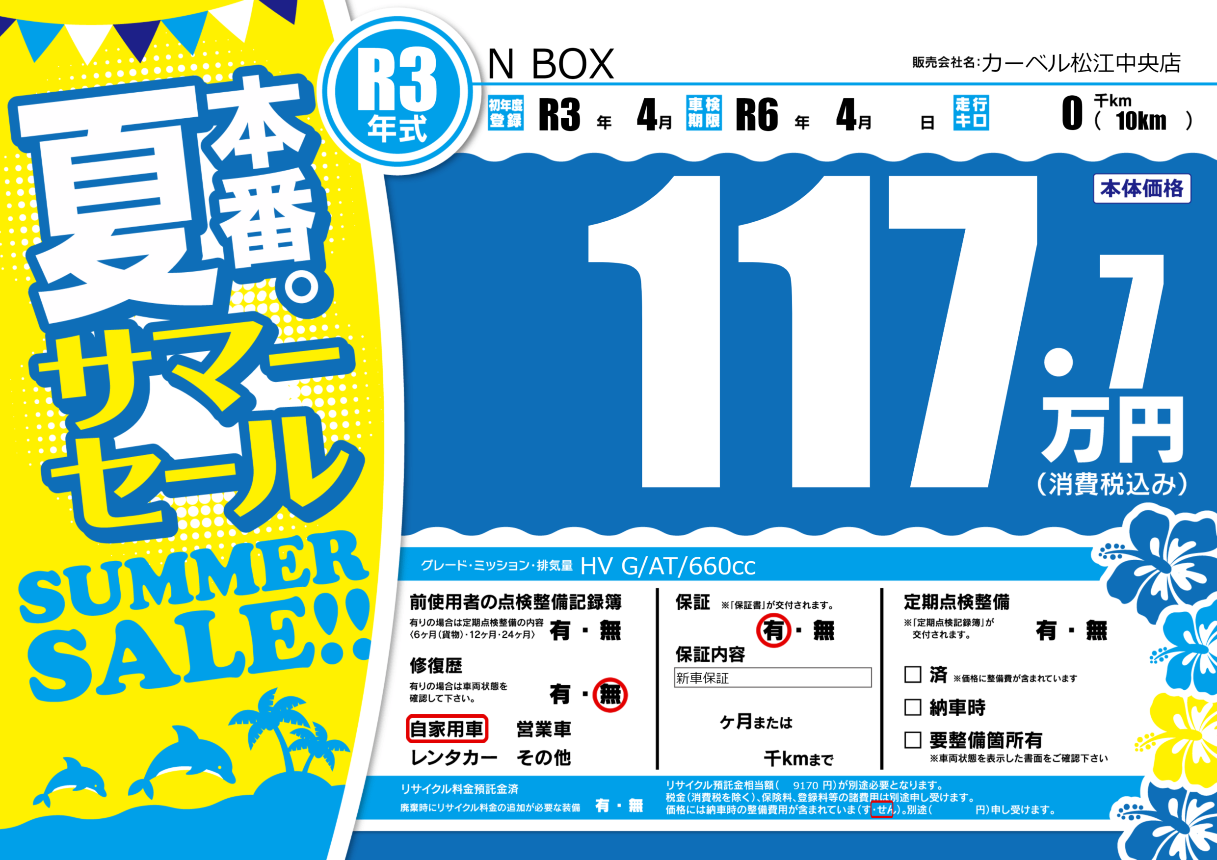 | 車名 | N BOX | グレード ミッション 排気量 |