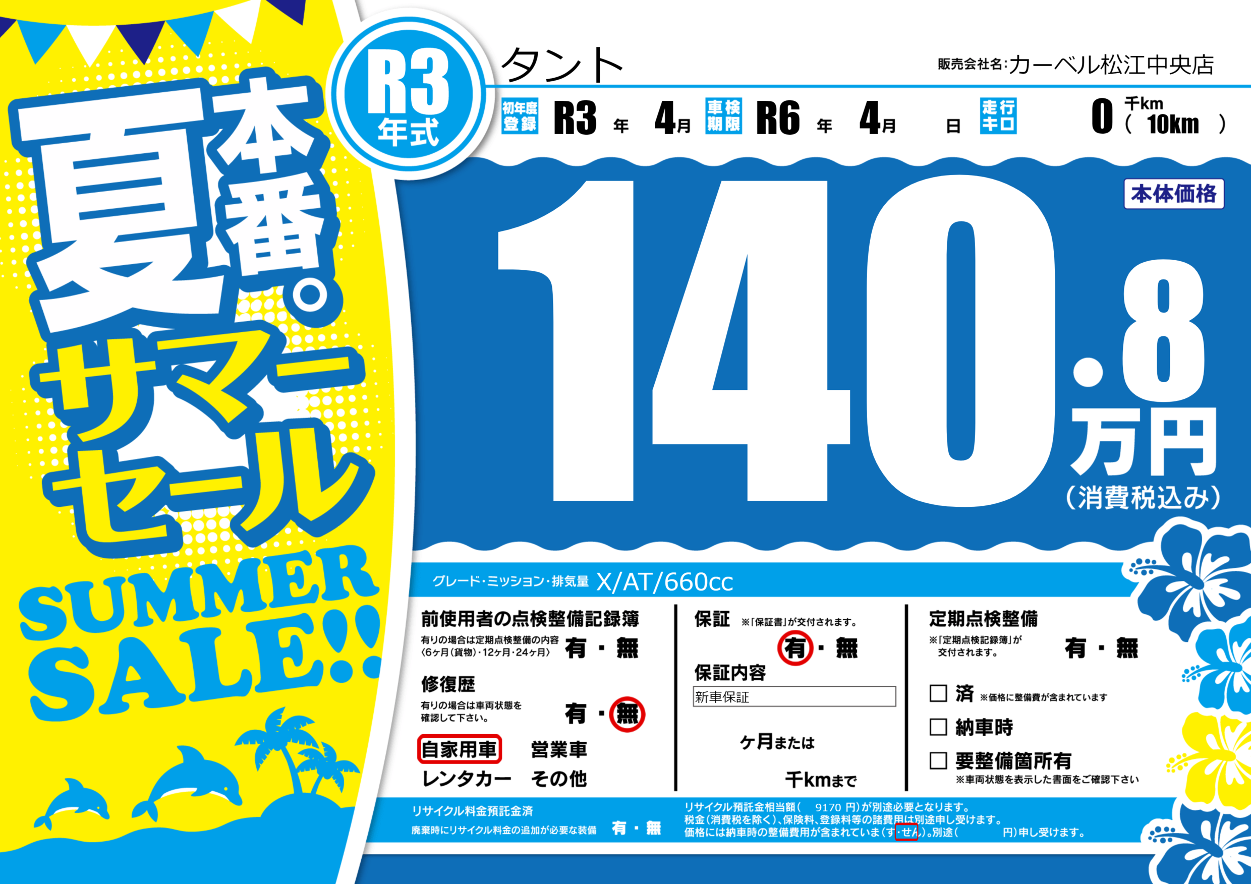 なし | 車検制限 | R6年4月---月 |