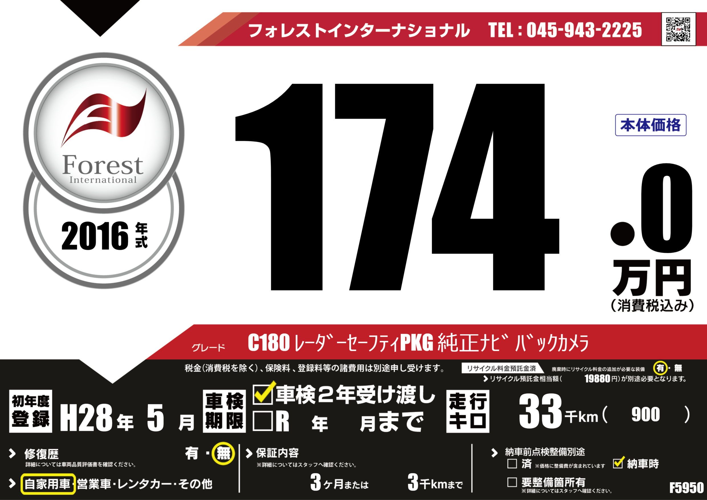 | 走行キロ | 3.3万km | 初年度登録 | H28年5月 |