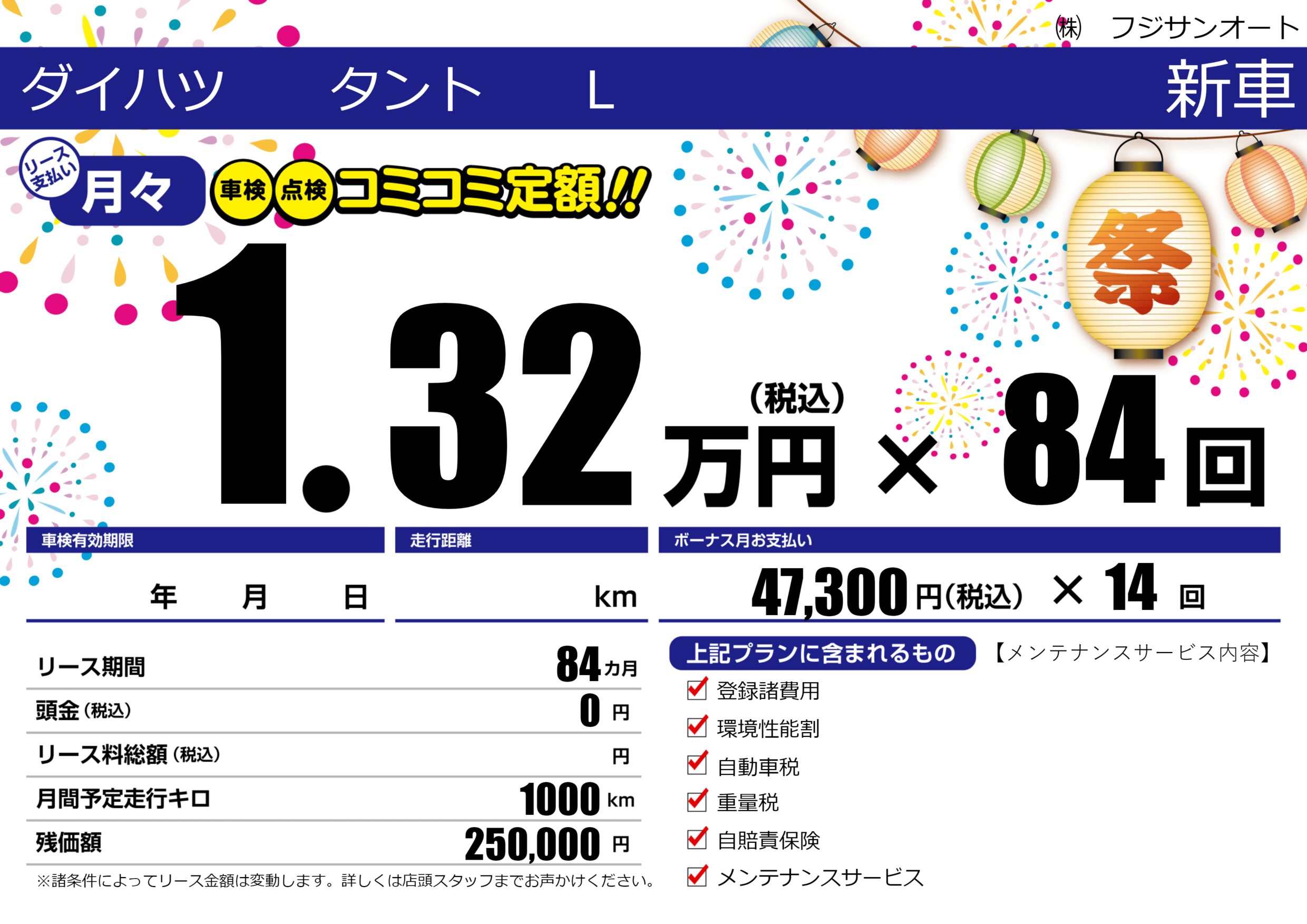 | 車名 | ダイハツ タント L | グレード ミッション 排気量 |