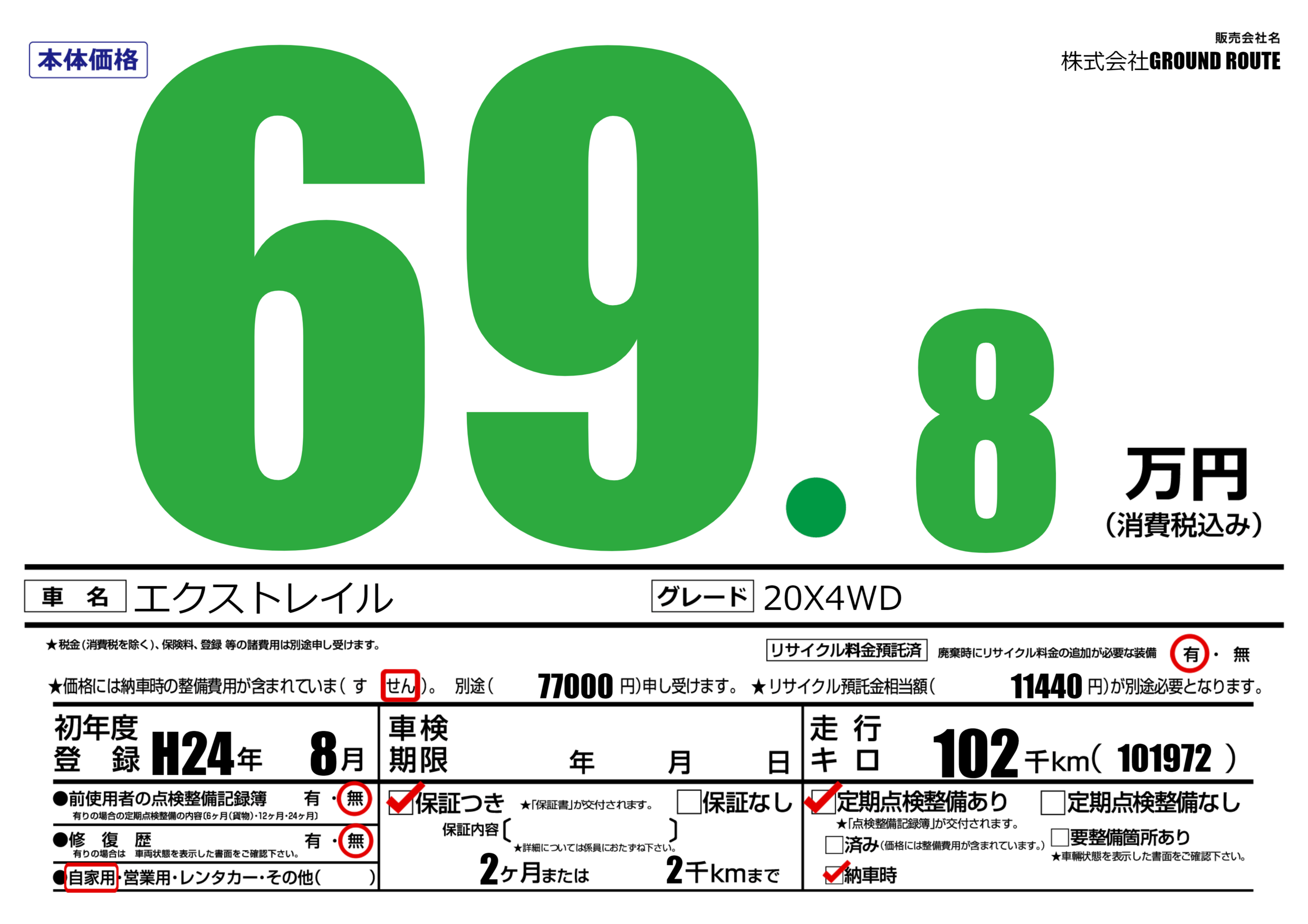 | 車名 | エクストレイル | グレード ミッション 排気量 |
