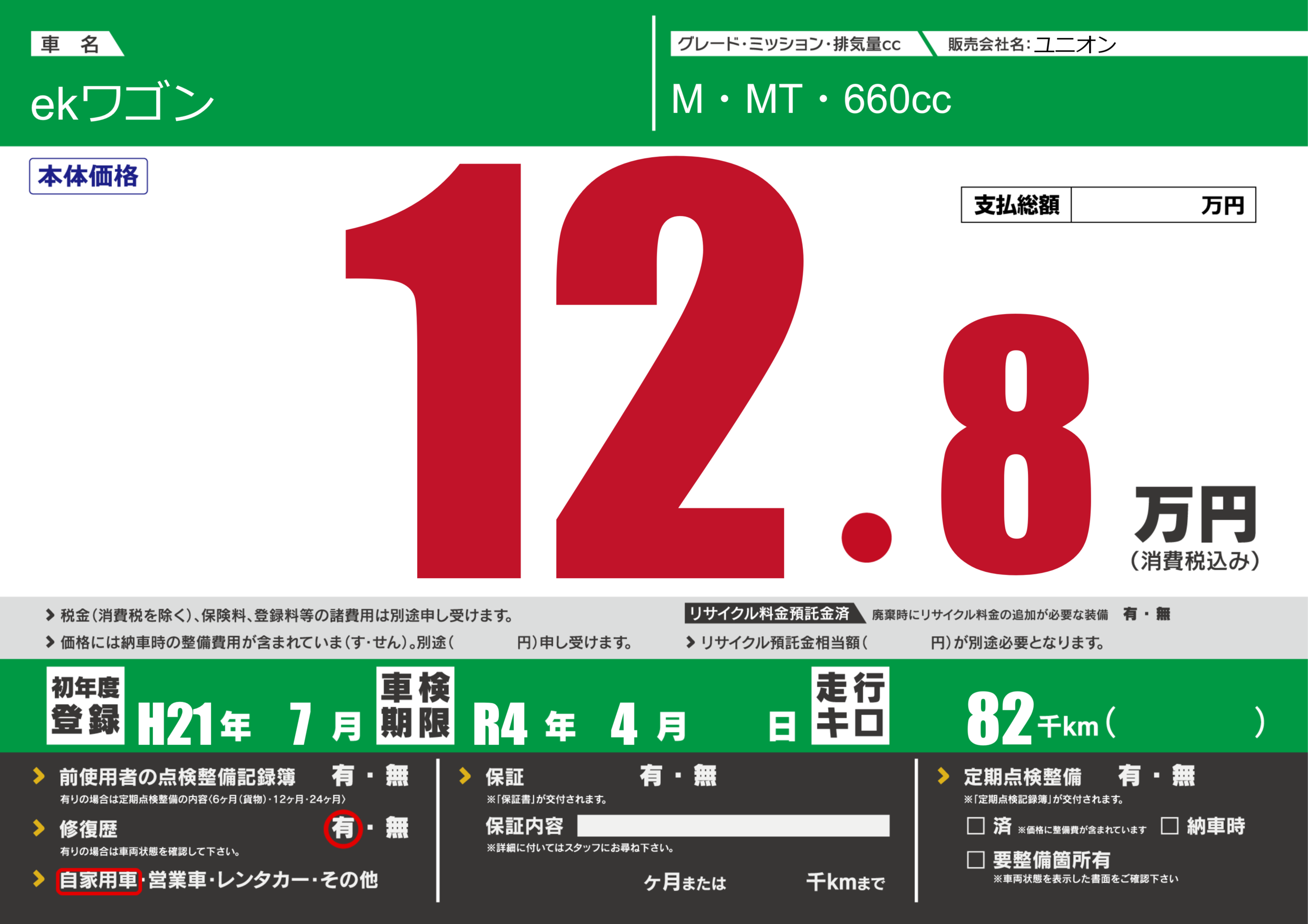 なし | 車検制限 | R4年4月---月 |
