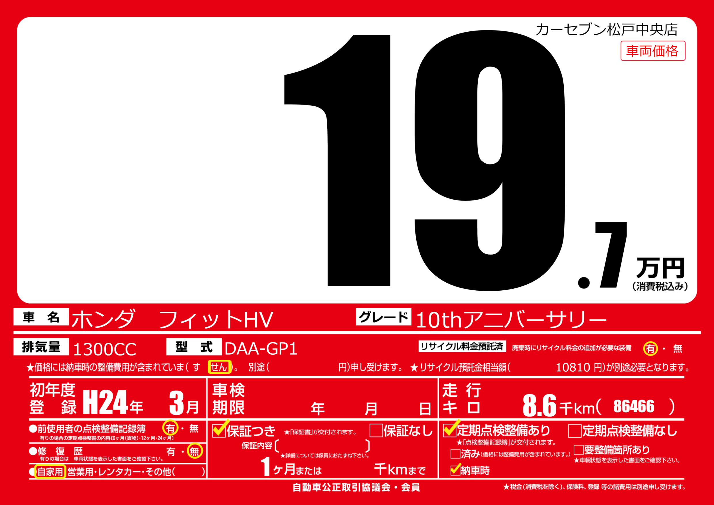 | 定期点検整備 | 定期点検整備あり 納車時あり | ||