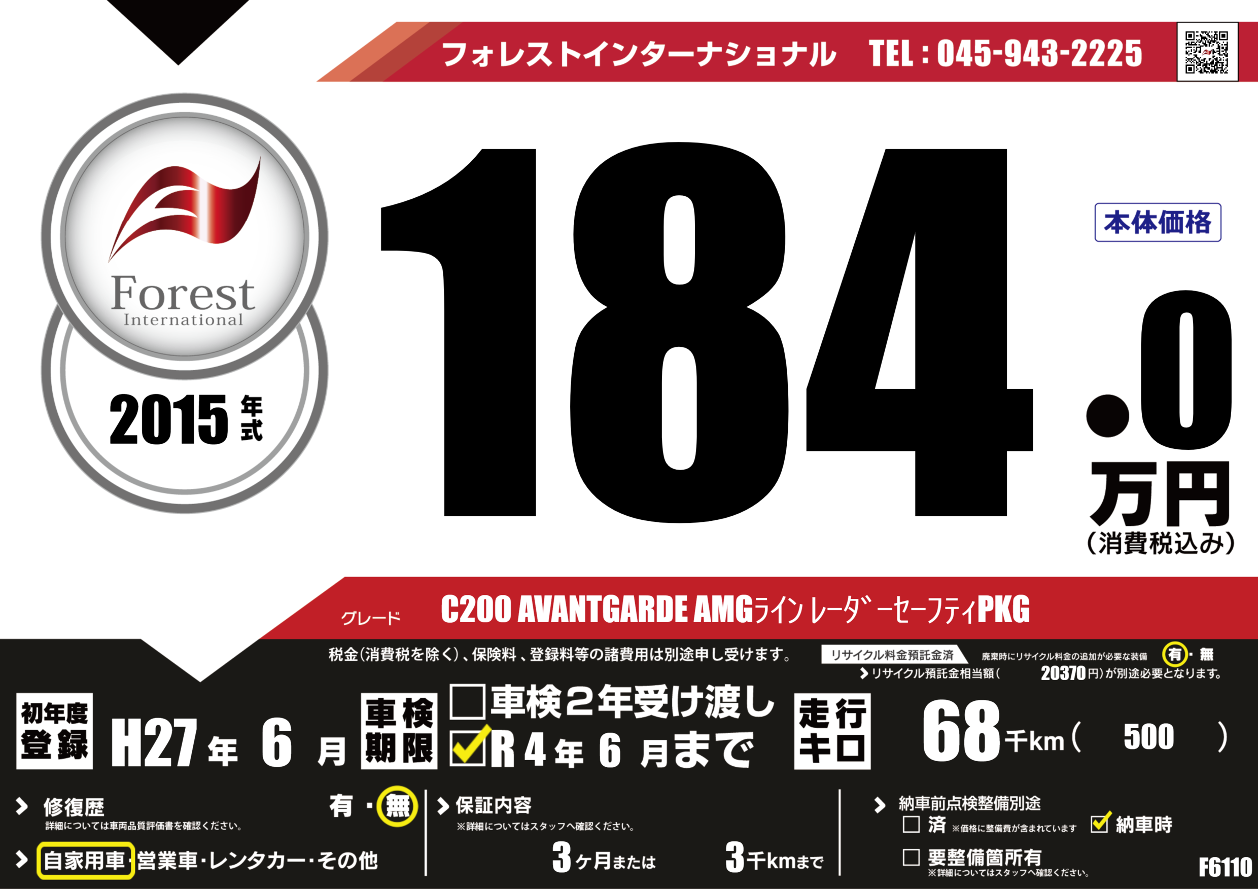 | 走行キロ | 6.8万km | 初年度登録 | H27年6月 |