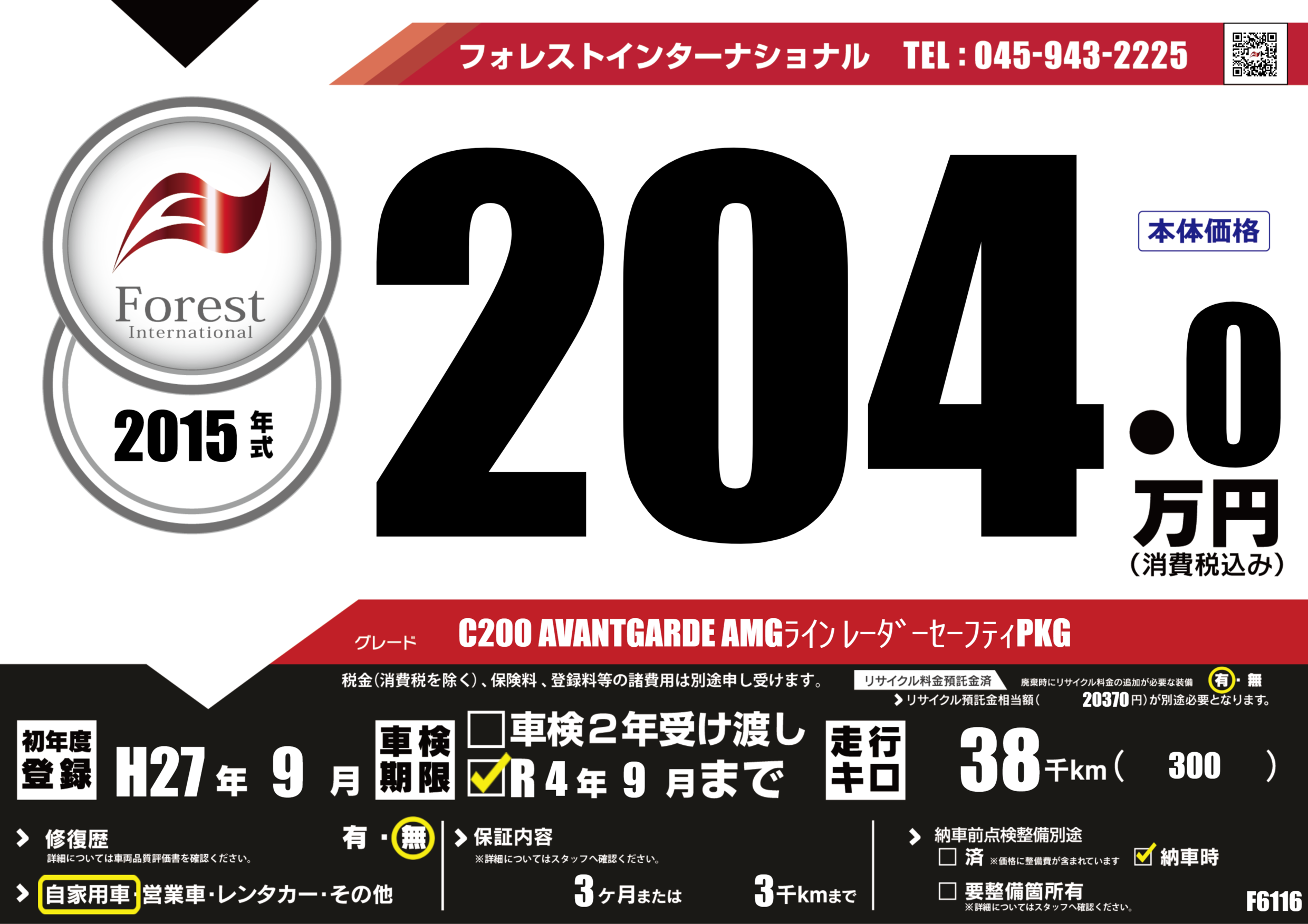 | 走行キロ | 3.8万km | 初年度登録 | H27年9月 |