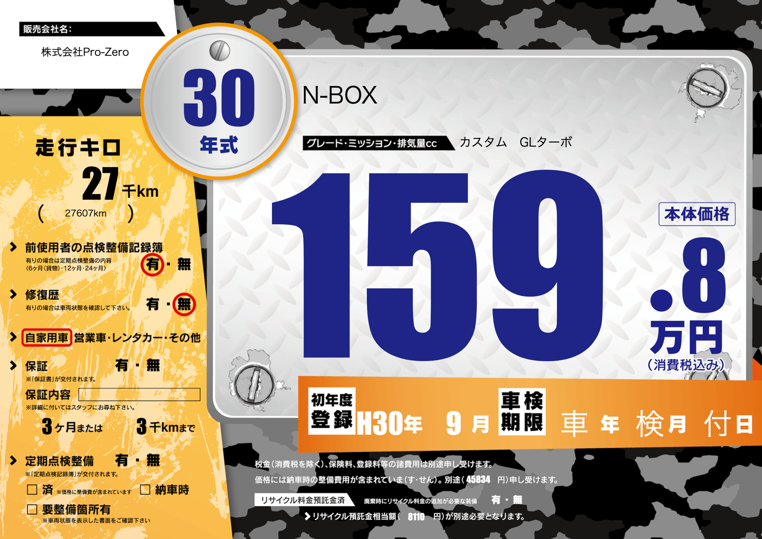 | 車名 | N-BOX | グレード ミッション 排気量 |