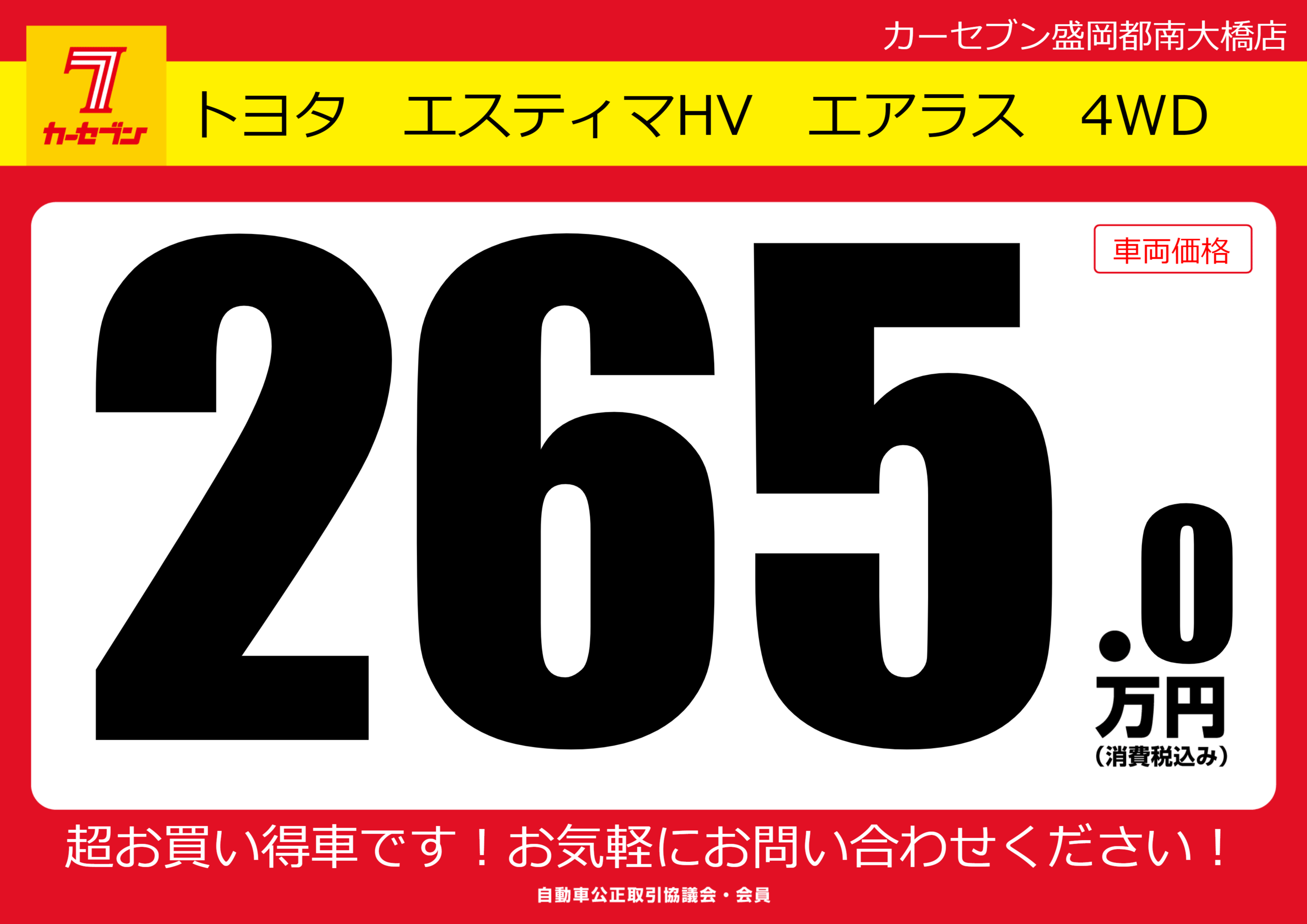 | 車名 | トヨタ エスティマHV エアラス 4WD | グレード ミッション 排気量 |