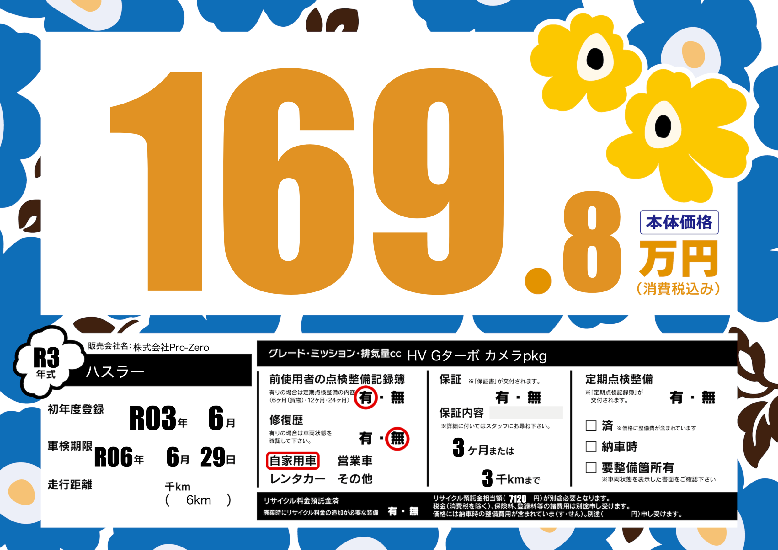 | 車名 | ハスラー | グレード ミッション 排気量 |