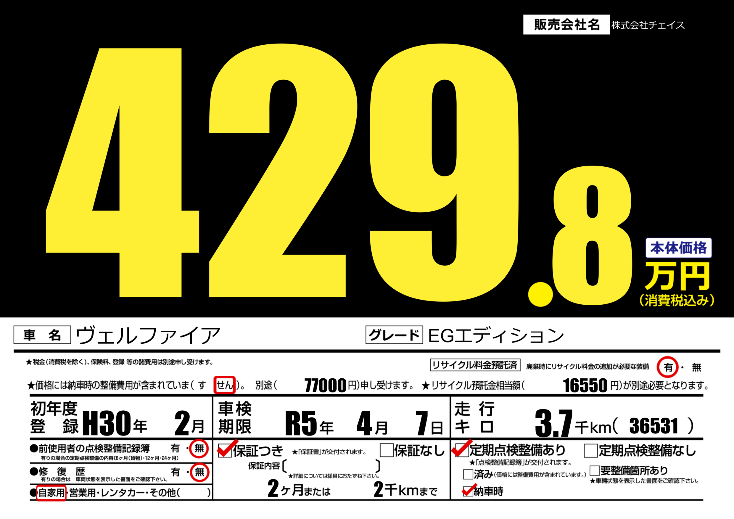 車検制限 | R5年4月7月 |