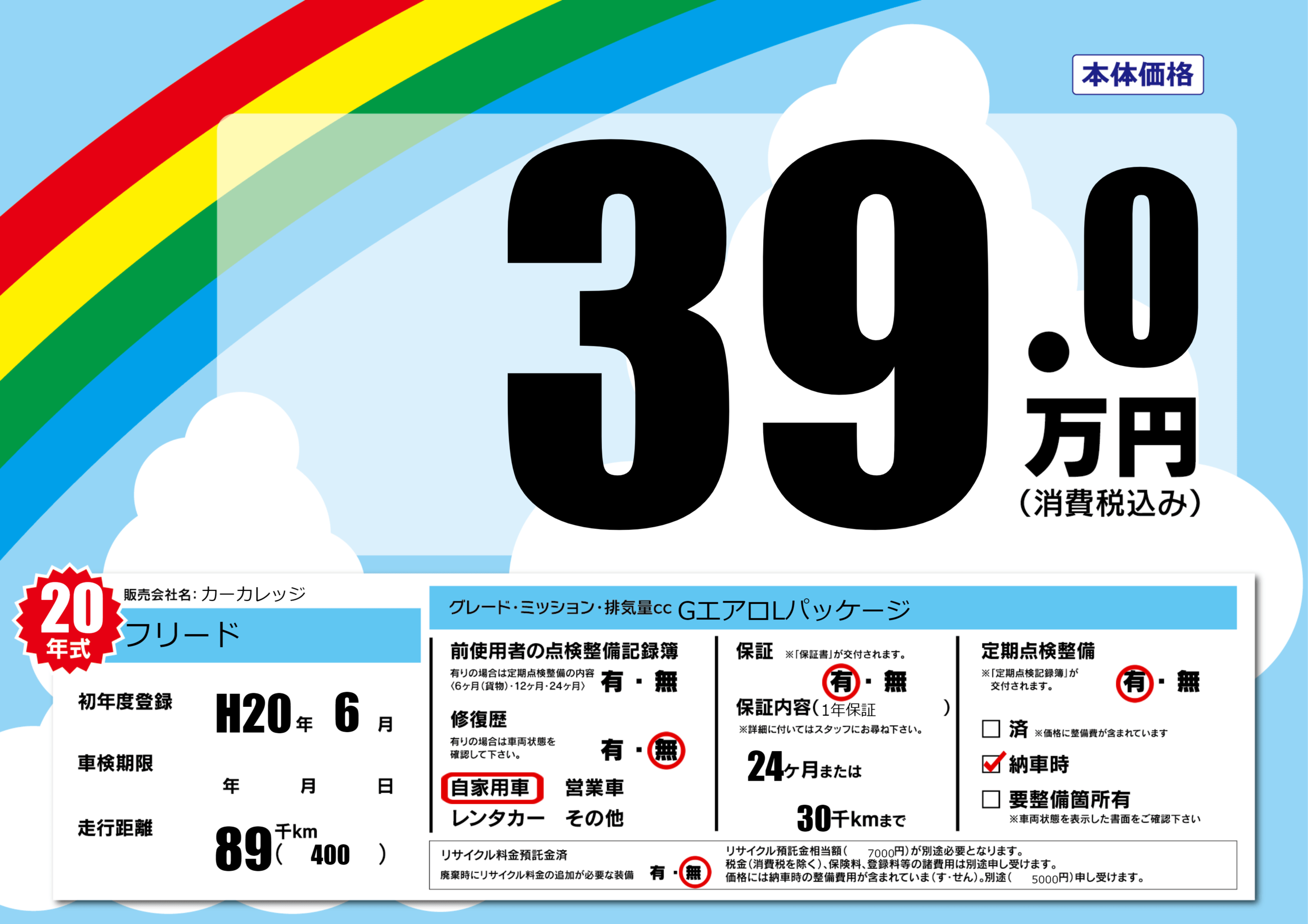 | 走行キロ | 8.9万km | 初年度登録 | H20年6月 |