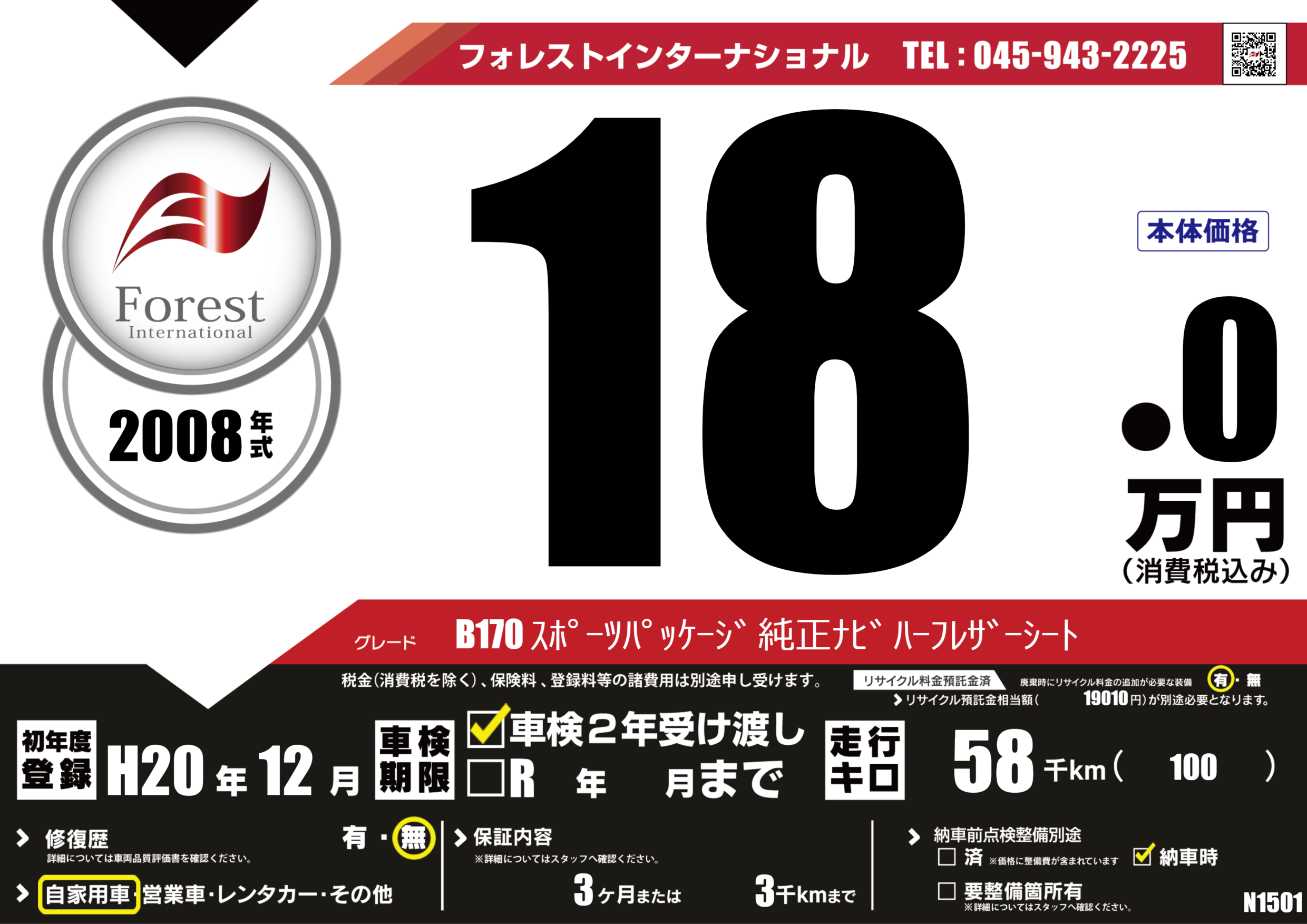 | 初年度登録 | H20年12月 | ||