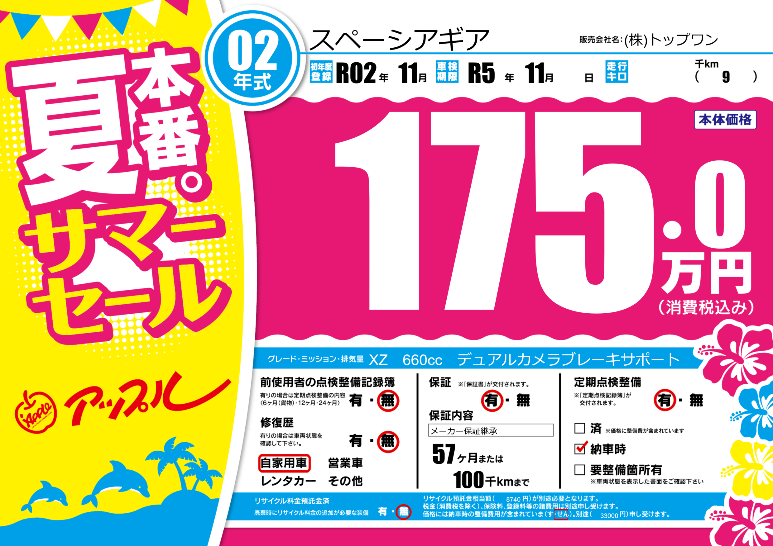 | 定期点検整備 | 定期点検整備あり 納車時あり | ||