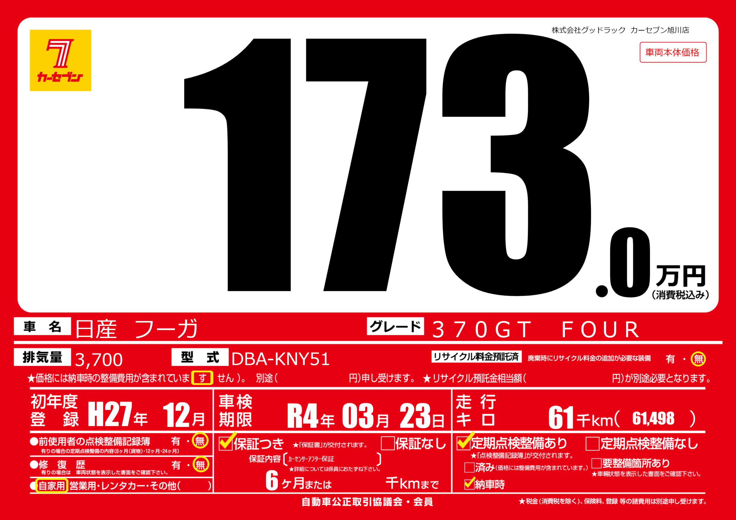 | 車検制限 | R4年 03月 23日 | ||