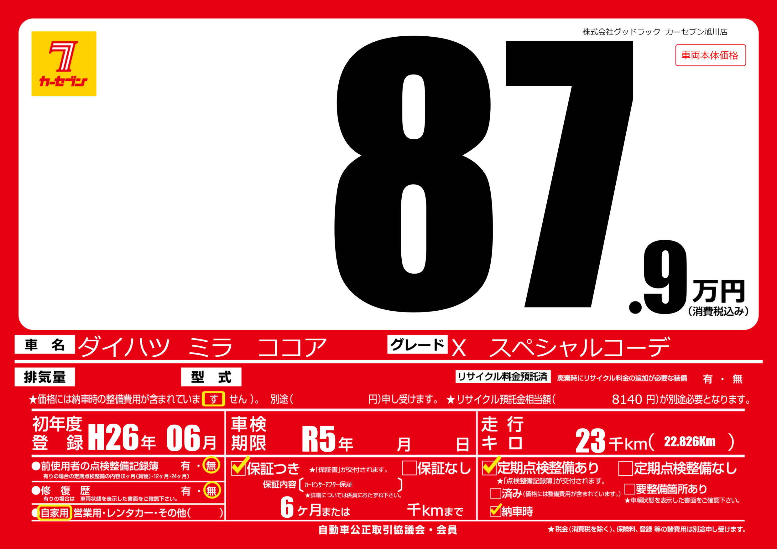 | 走行キロ | 2.3万km | ||