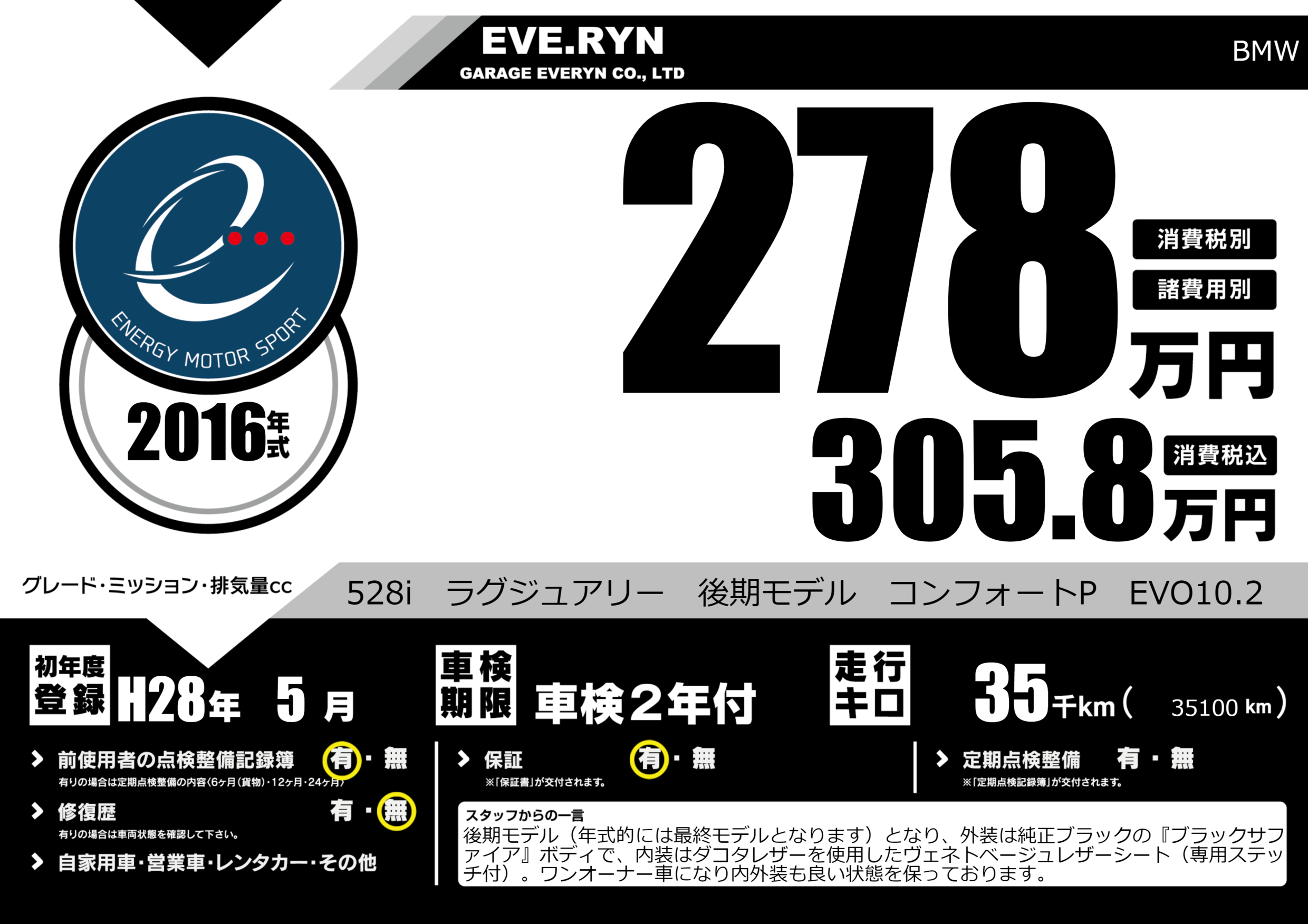 528i ラグジュアリー 後期モデル コンフォートP EVO10.2 |