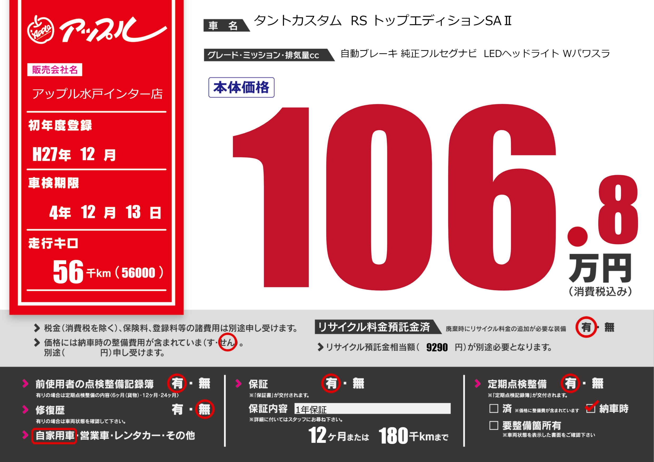 なし | 車検制限 | 4年12月13月 |