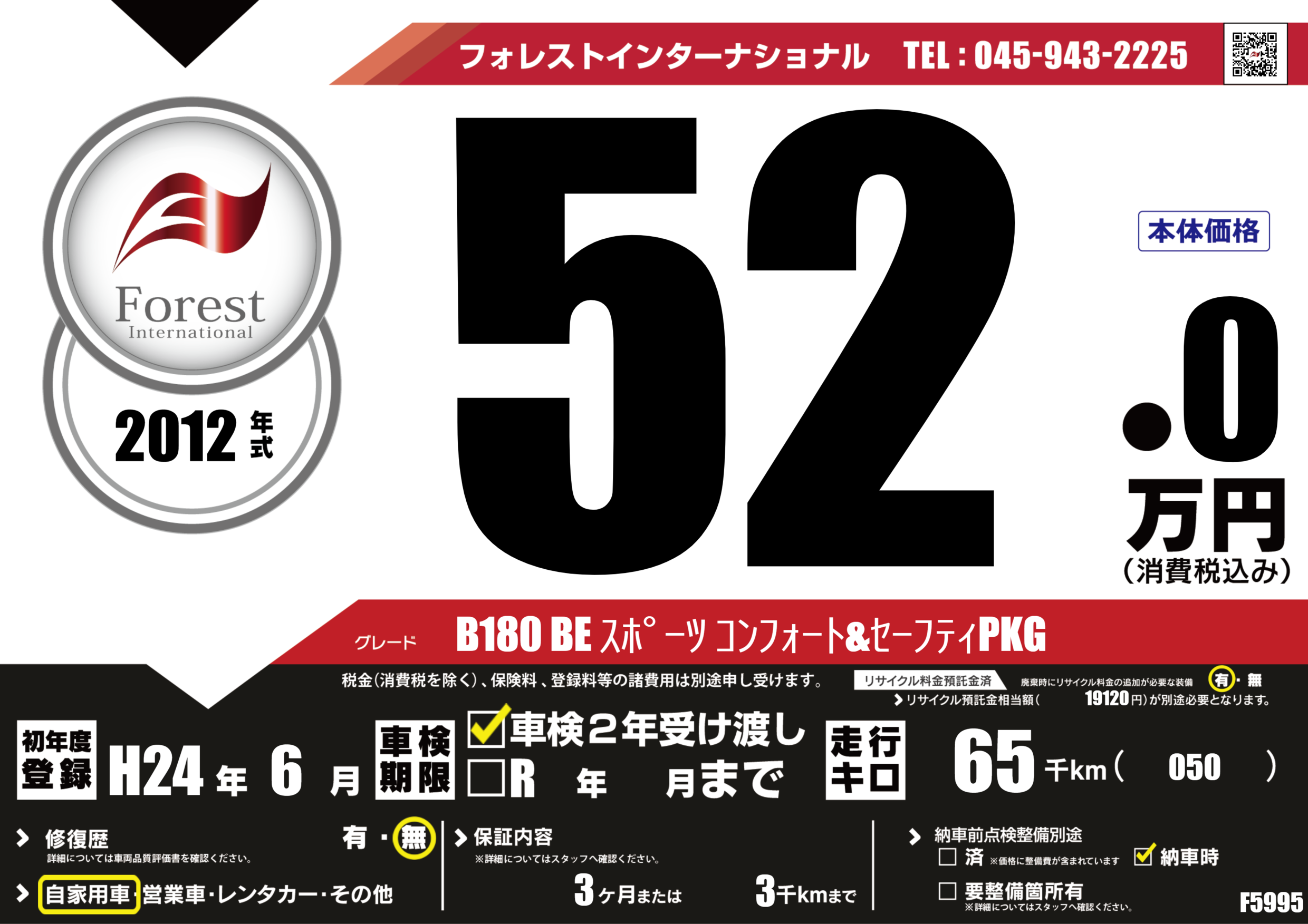 | 走行キロ | 6.5万km | 初年度登録 | H24年6月 |