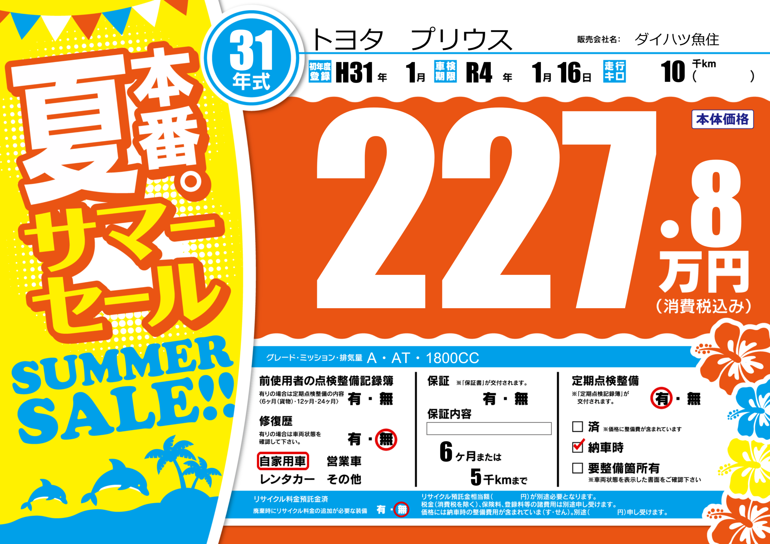 なし | 車検制限 | R4年1月16月 |