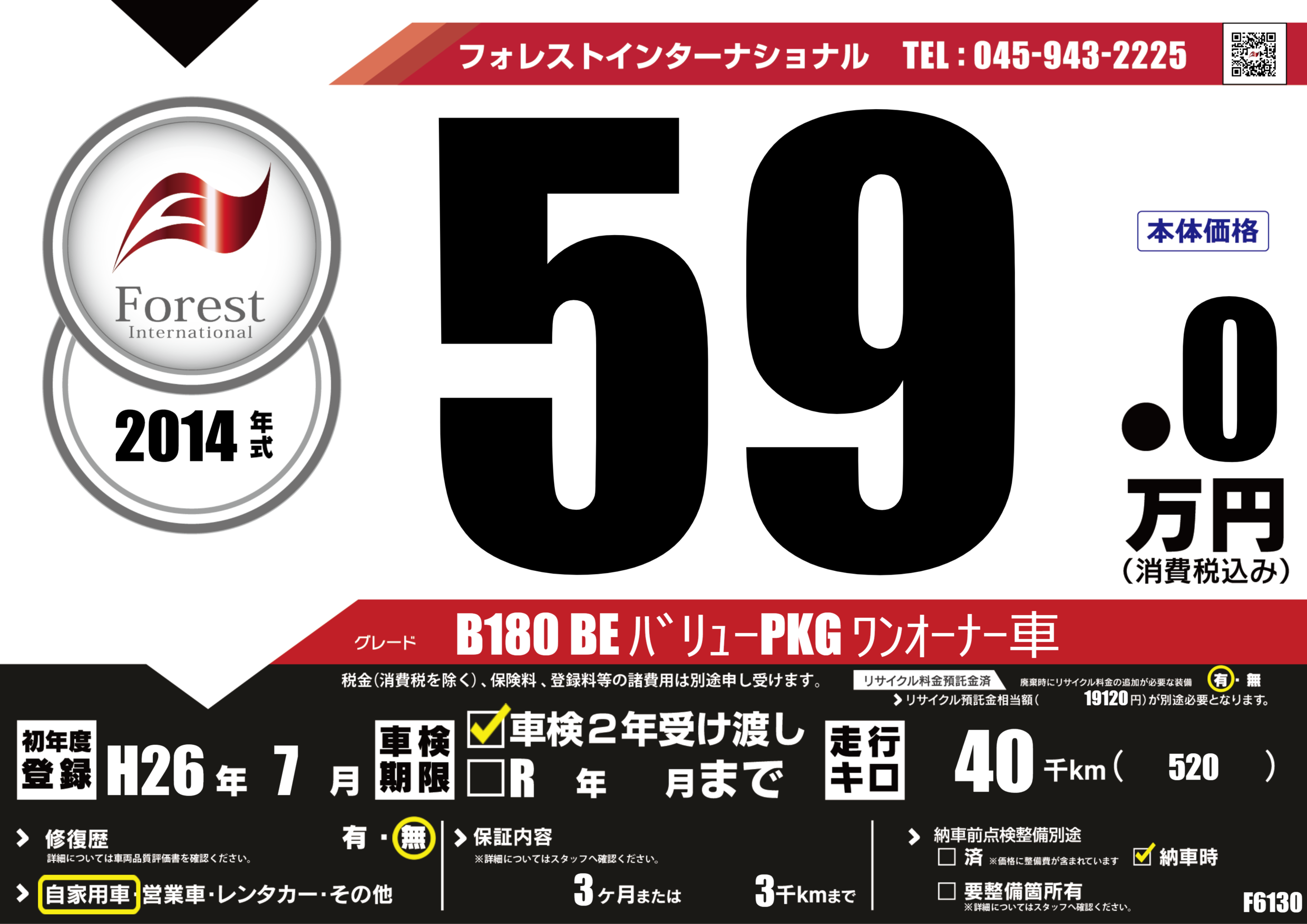 | 走行キロ | 4万km | 初年度登録 | H26年7月 |