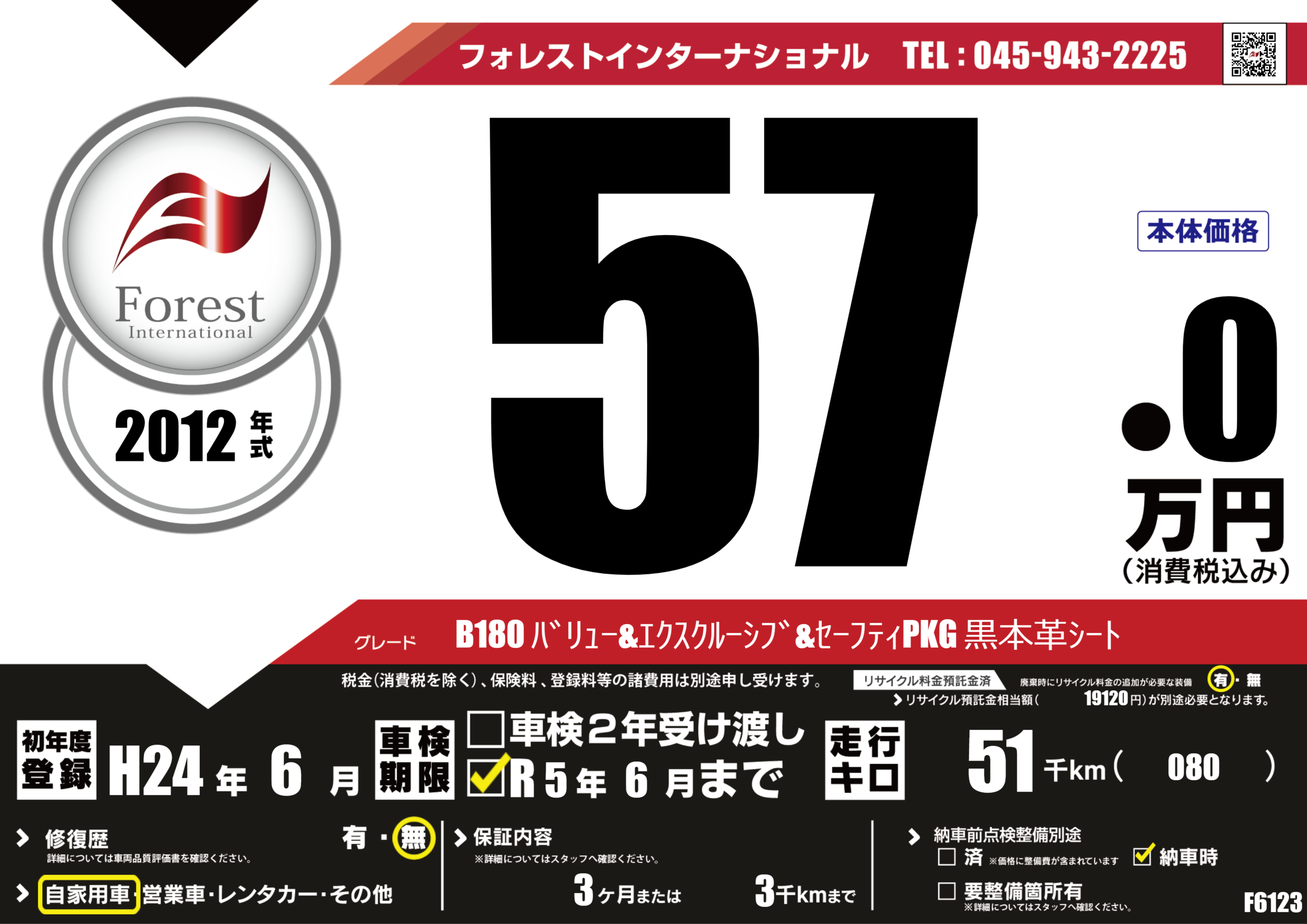| 走行キロ | 5.1万km | 初年度登録 | H24年6月 |