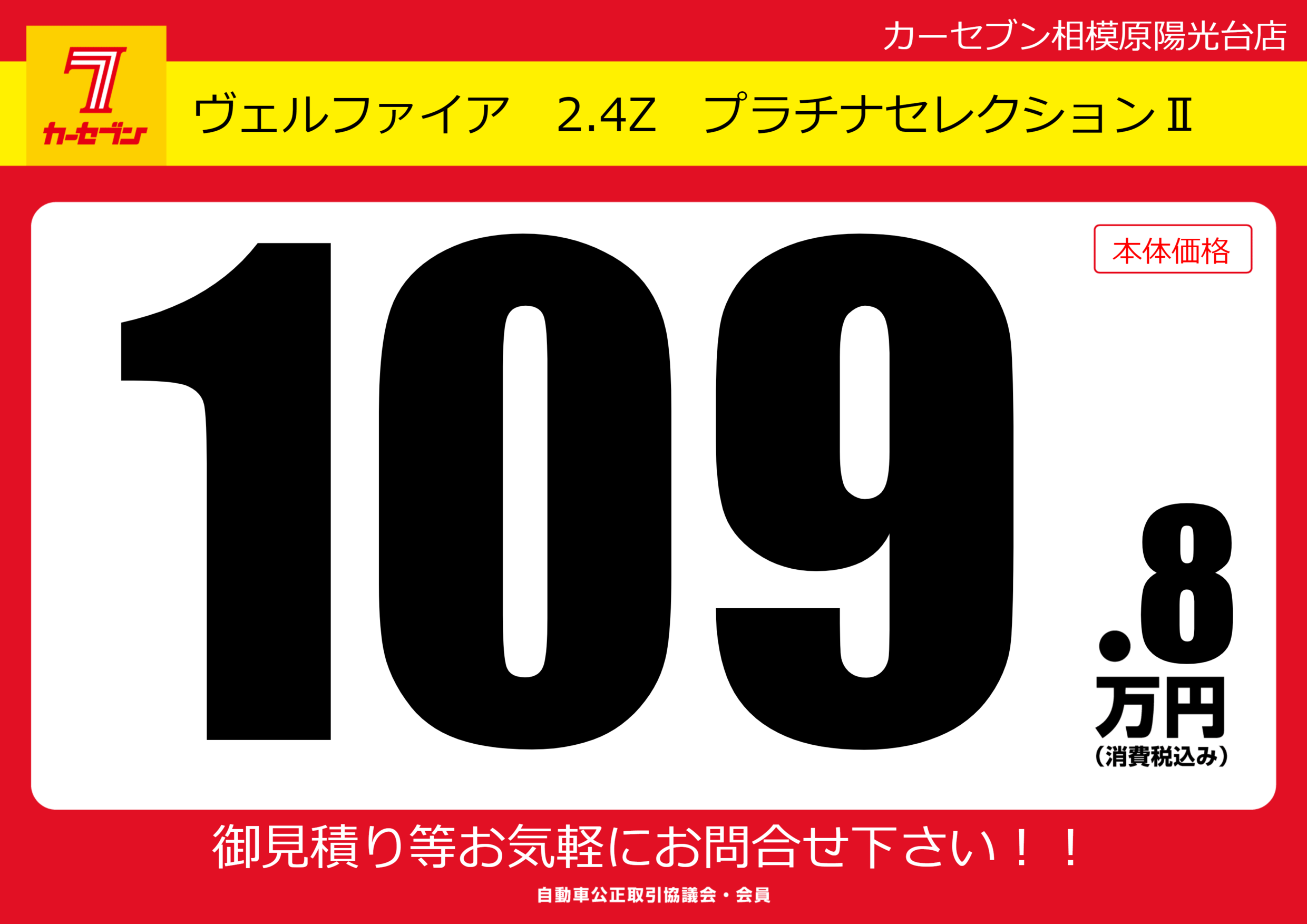 | 車名 | ヴェルファイア 2.4Z プラチナセレクションⅡ | グレード ミッション 排気量 |
