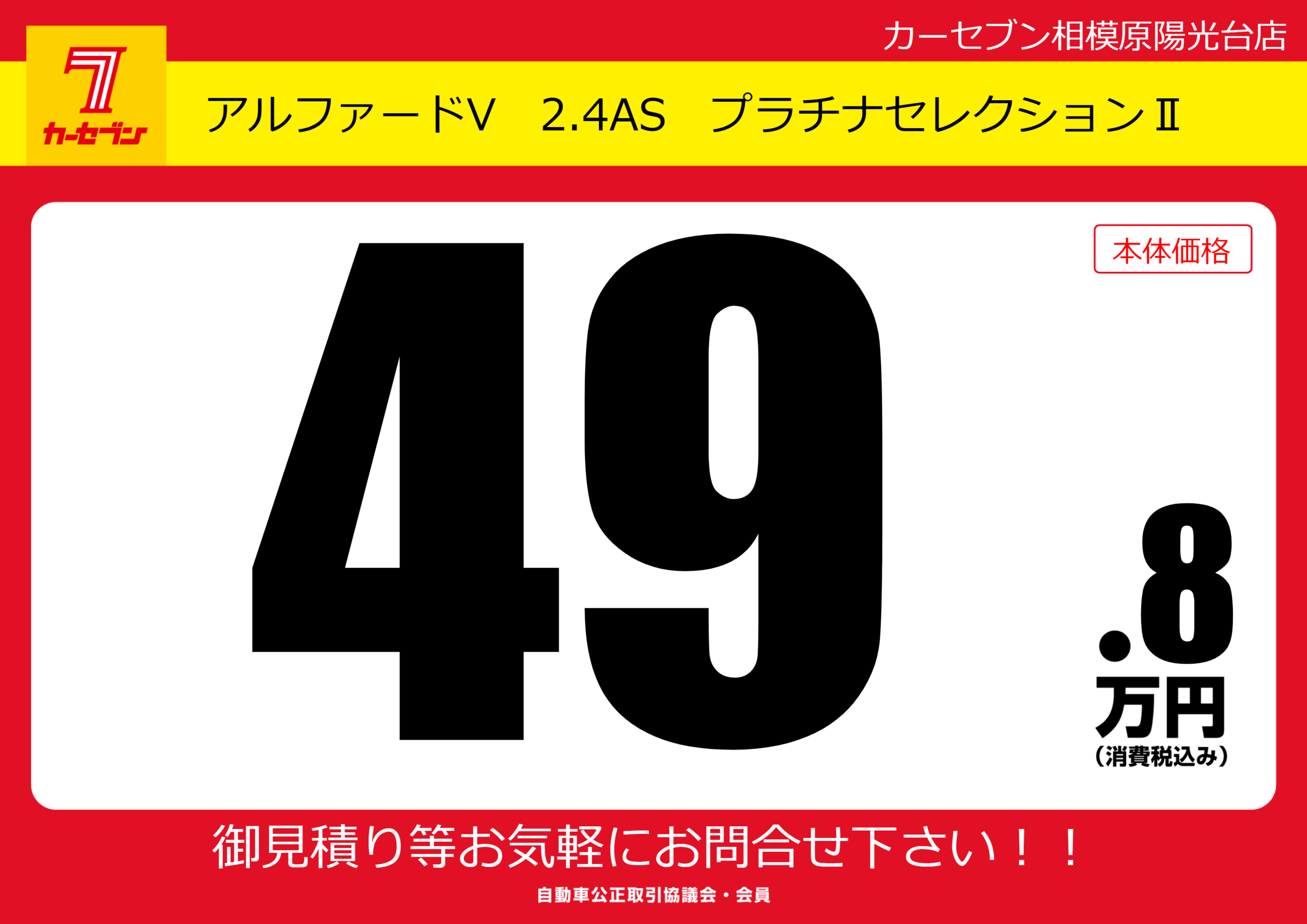 | 車名 | アルファードV 2.4AS プラチナセレクションⅡ | グレード ミッション 排気量 |