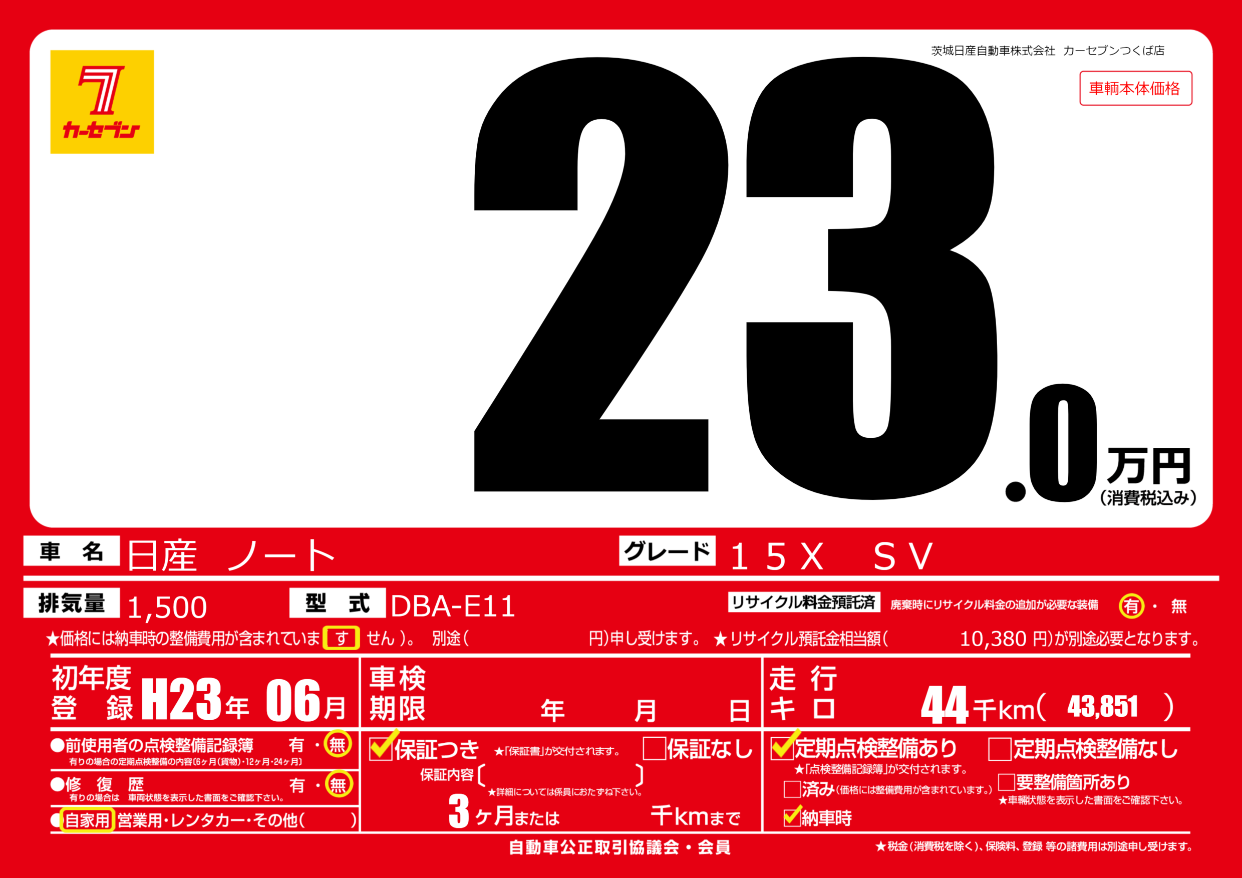 | 車名 | 日産 ノート | グレード ミッション 排気量 |