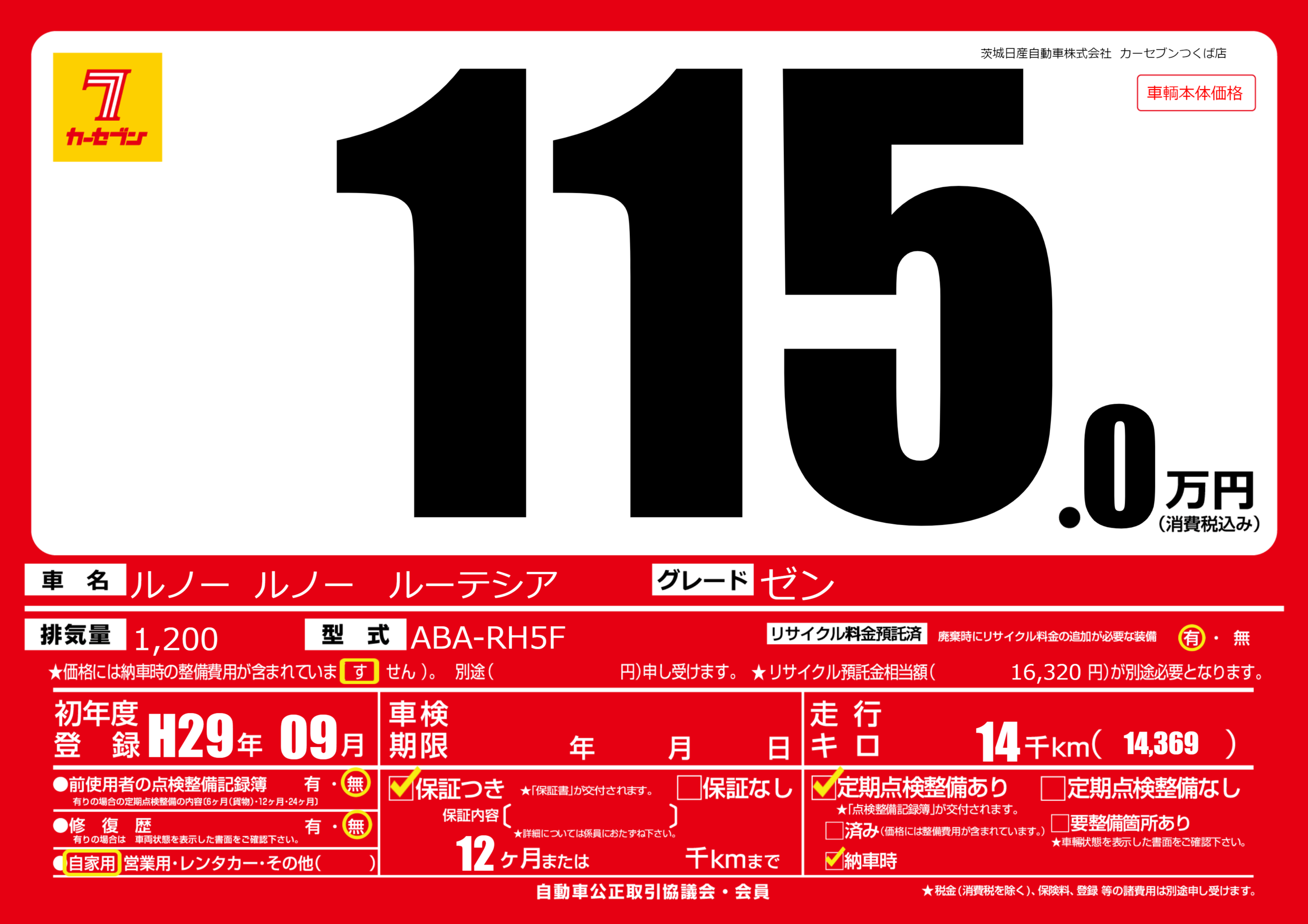 | 定期点検整備 | 定期点検整備あり 納車時あり | ||