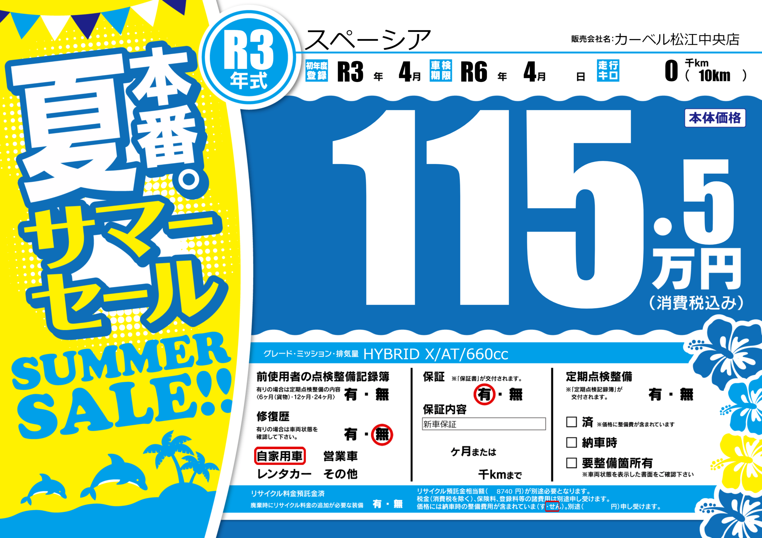 | 走行キロ | - | 初年度登録 | R3年4月 |