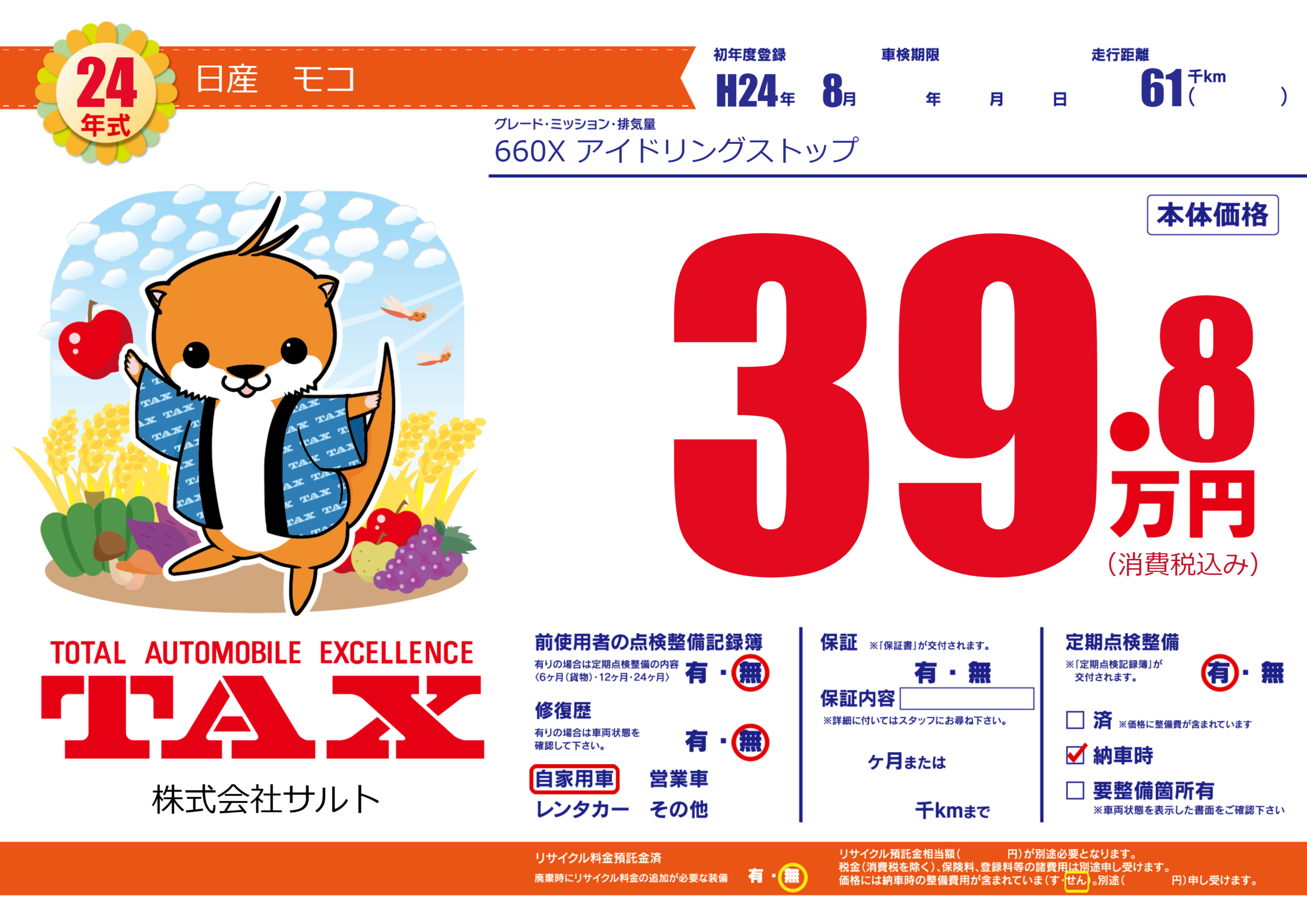 | 車名 | 日産 モコ | グレード ミッション 排気量 |